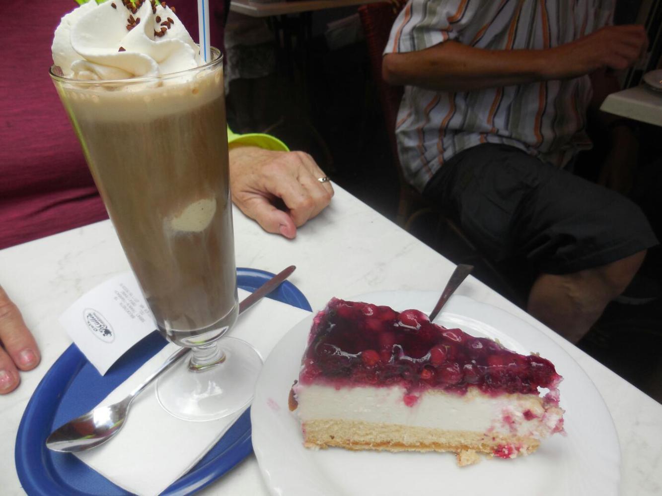 It's just midday, but already I am ready to declare this the best of all possible cycling days. This judgement is probably biased a little by the fact that I am sitting at an outdoor cafe on a car free street, waiting for the lady to bring out my johannesbeeren sahne torte (red currant cream torte). The street is in the picturesque town of Traben, just one of many we have passed through since leaving Bernkastel this morning.