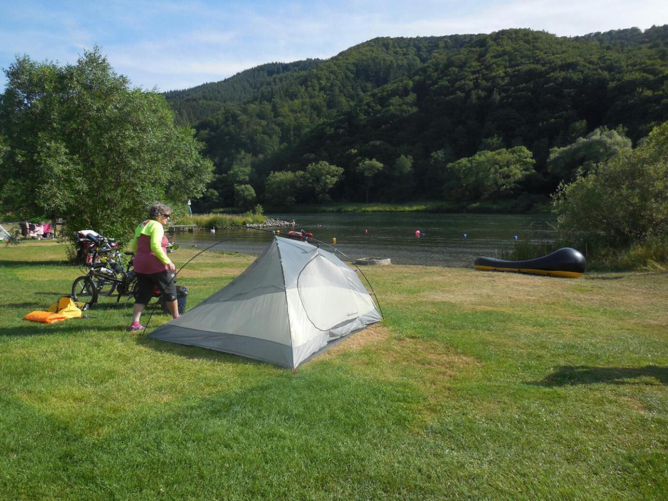 By the time the afternoon was ending, we were at Ediger. To make it to Cochem we would need 20 km more. We could have pressed on, of course, but then we would have been beat and no doubt have ended up in a guesthouse. As it was, we pulled in to the camping at Ediger, which is called camping Zum Feuerberg. 18 euros, including two shower tokens.