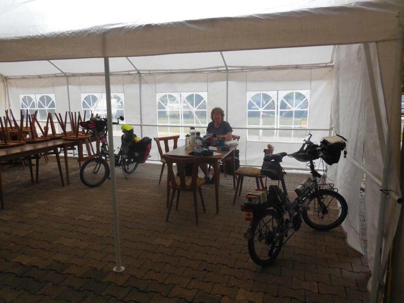 We were able to squirrel away some of the breakfast to become lunch, a bonus, but in any event this fuelled us up beautifully to start riding. Our bikes were outside under cover, and as expected they showed no sign of having been tampered with - in fact not touched and probably not even looked at. We love that.