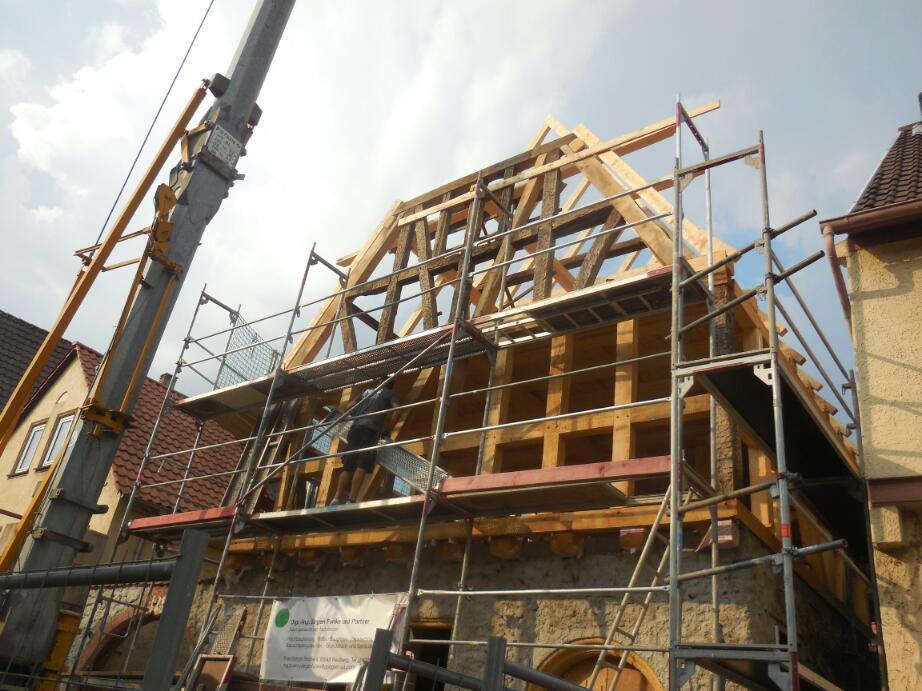 We trundled around the streets for a bit and tried to follow directions the lady had given for a backup bakery - but nothing. We did see one construction project, where the fachwerk was being reconstructed. Very interesting, and so encouraging to see a building being basicallýpreserved rather than knocked down and replaced with something ugly.