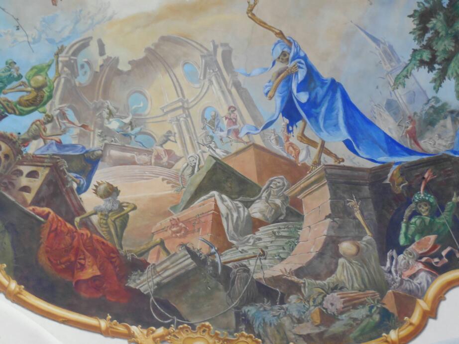 We stopped first at the Sandkirche, which had an opulent rococo interior, built in 1756. The painted celings were nice, until you really looked at them. The images depict some sort of sci-fi horror story.