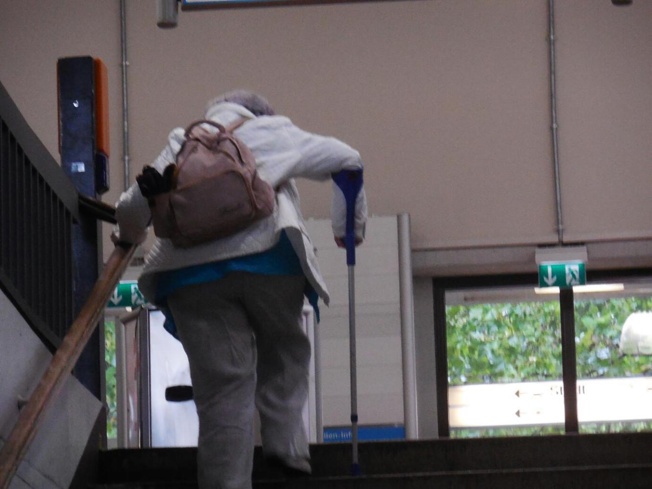 The last train was crowded too, but again good natured cooperation from the cyclists and other passengers smoothed the way. Again, even at the big town of Augsburg, the only way out was to carry the loaded bikes on lots of stairs. Being "young and strong" we handled this ok, but we watched ruefully as an authentic old lady with a cane painfully worked her way up the stairs. It seems if you have a wheelchair you can forget about train travel, at least in this region..