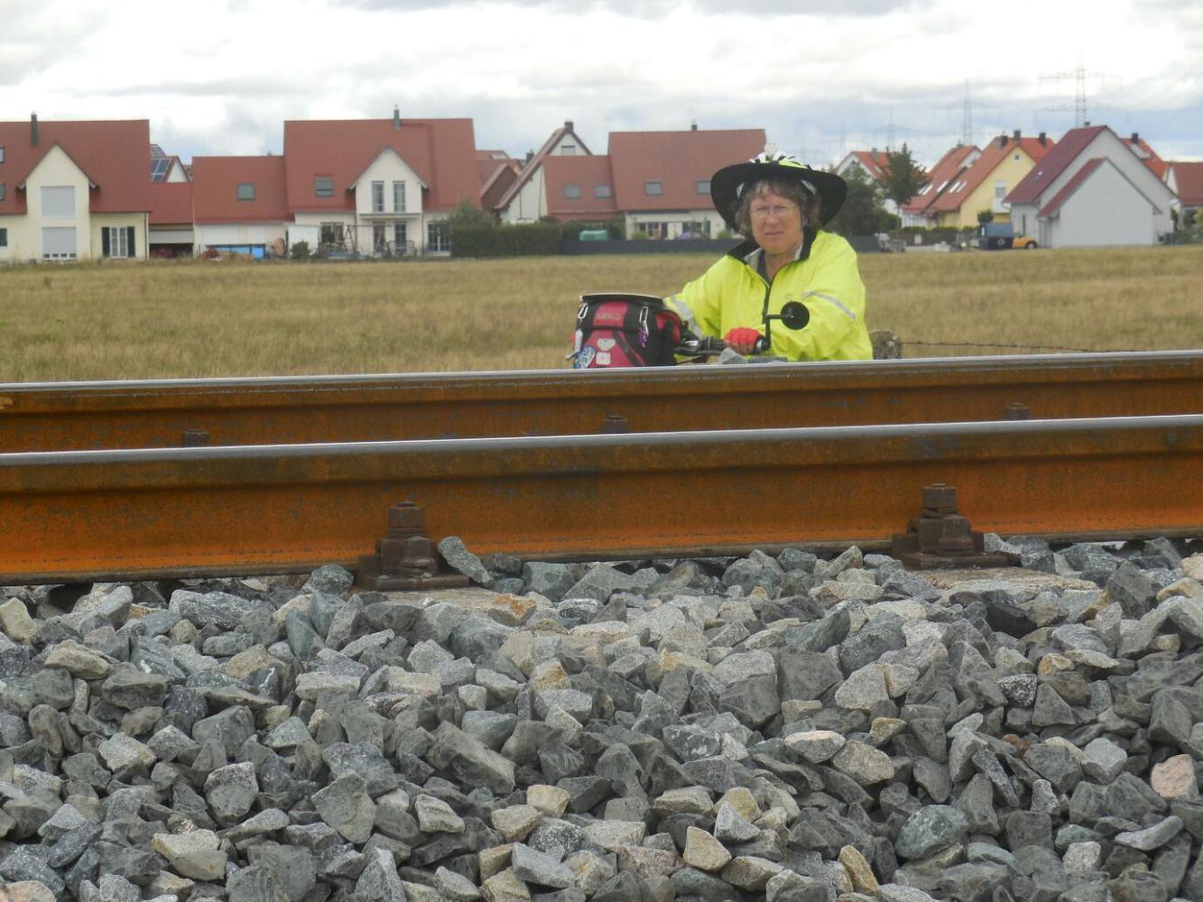 We did however get rough gravel path, mostly, until we came to a spot where - without notice, detour, or bypass - a place where the road and path crossed the train tracks was completely blocked by construction. This is very uncharacteristic for Germany, and we were very surprised. There seemed no way around the situation, so we moved along the track a short distance and made to carry the bikes over. After all, we had had the DeutcheBahn training course in bike carrying ealrier in the day.