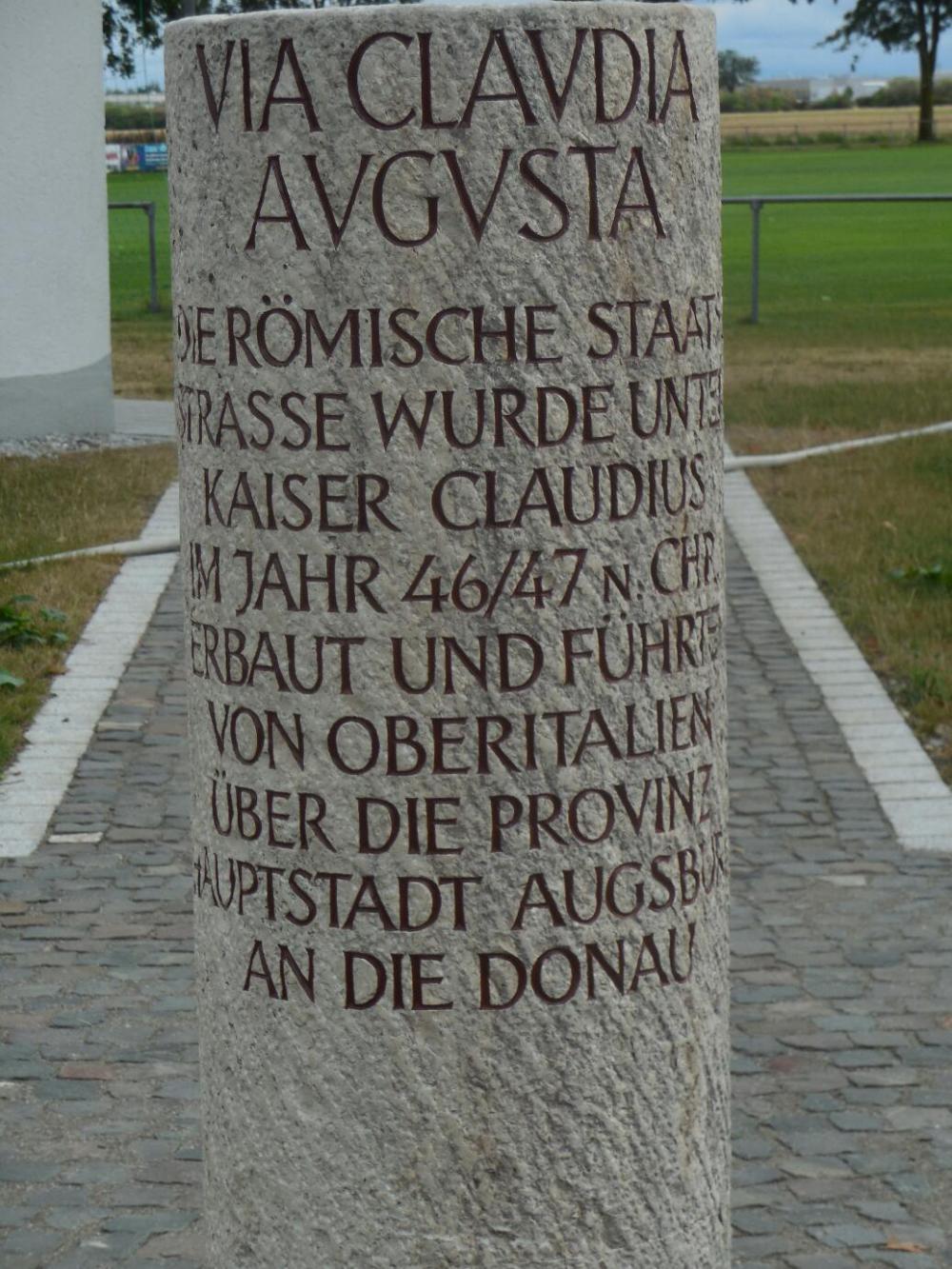 We continued on the other side of the obstruction, wending our way through corn fields and past tiny villages. When the time came to begin thinking about stopping, we did pass several good wild camp spots. Two had crucifixes plus benches and garbage cans, and seemed quite welcoming. And there were another two that were way stations on the Via Claudia Augusta, the radweg we are following. These had pseudo Roman mile markers, and panels explaining about the Romans and their roads. We didn't stop, though, presumably because we had little or no water. But subconsciously, Guesthouse was what we were looking for.