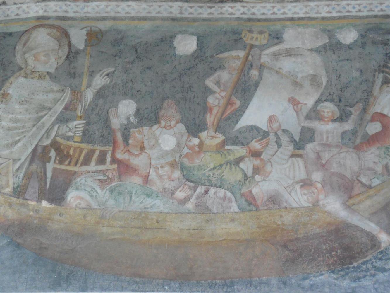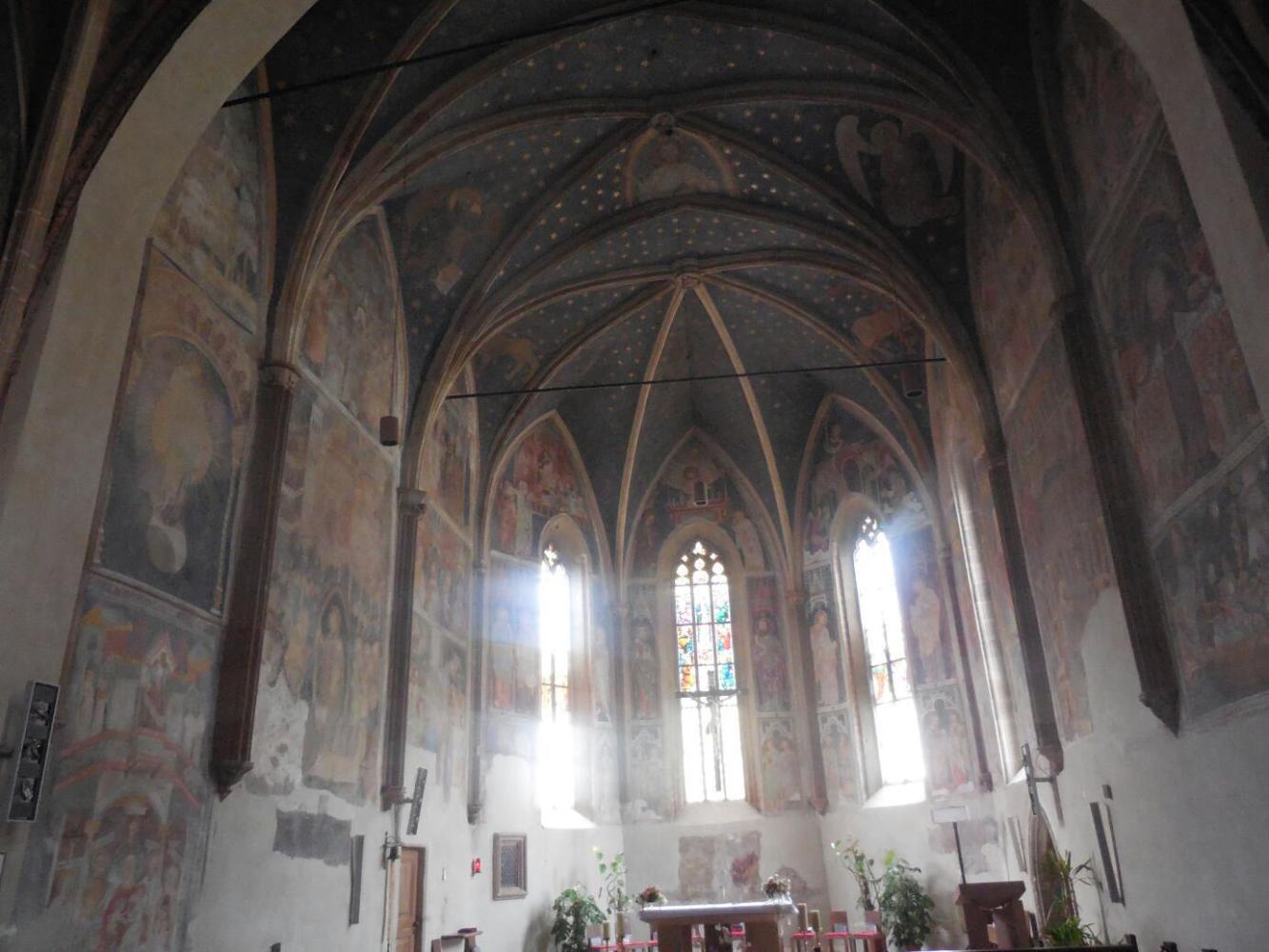 We chose Terlano mostly at random, though we did focus on their trailside write up of their frescoed church. A strong second objective (other than seeing the church) was to see if there was any food in the town. There was a bakery opposite the church, but it was closed, of course. Th echurchhad an impressive tower, and a multi-coloured roof, of a style that has popped up just recently as we progress south. Inside the church were frescoes, much faded with time. I could not really make out what their subjects were, but it was interesting nonetheless.