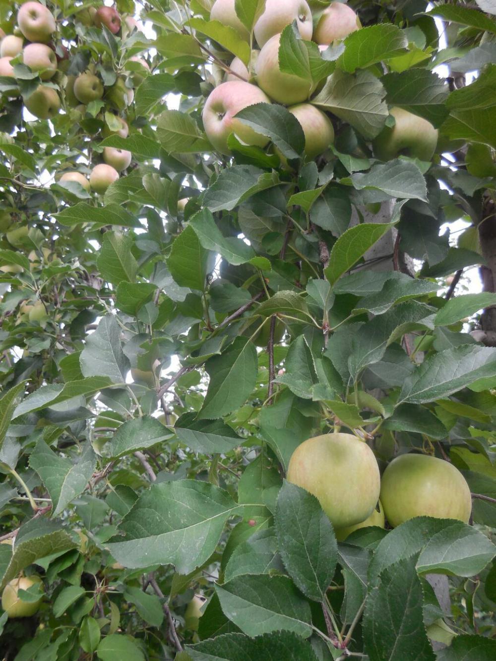 we have been very good about not pilfering any apples, but our willpower faltered a little today. We snatched one that was not a green variety and not a red delicious, but sort of in between. It was maybe 10 percent under ripe, but still very good, especially since it was fresh from the tree and a forbidden (stolen) fruit.