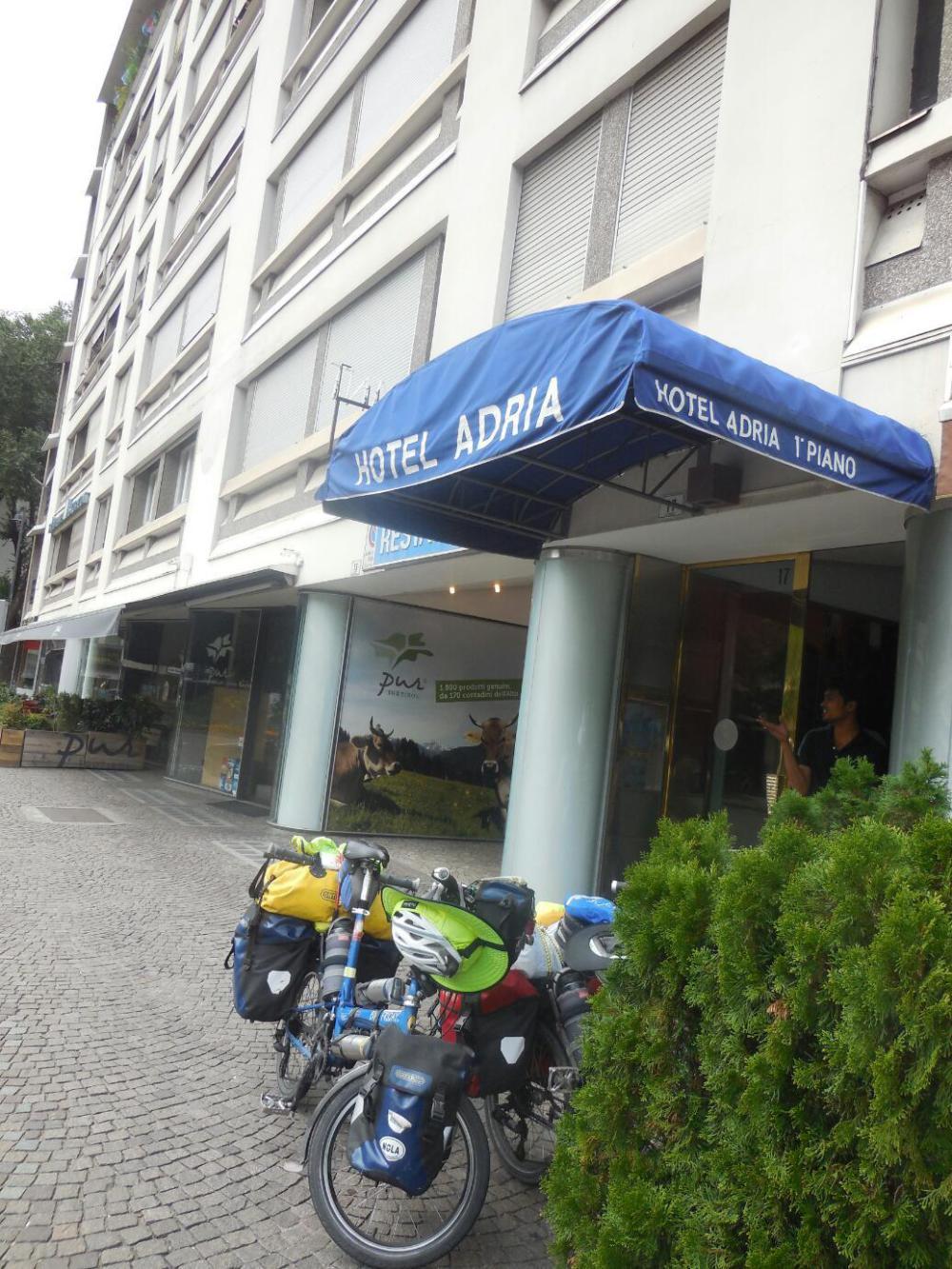 Though Bolzano styles itself a bicycle friendly city, the matter of where to put the bikes at the Adria was not easy. They came up with storage locker deep (like three stories deep) in the basement. So we unloaded absolutely all our luggage and I carried the bikes down the winding dark staircase. Then we dragged the stuff in several trips of the tiny elevator up to our fourth floor room.