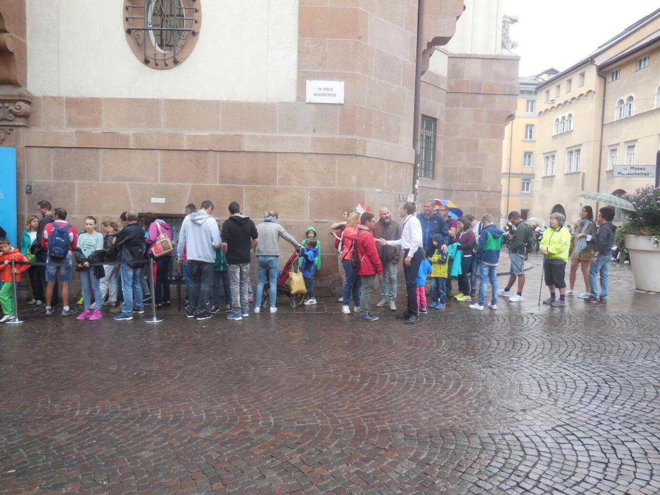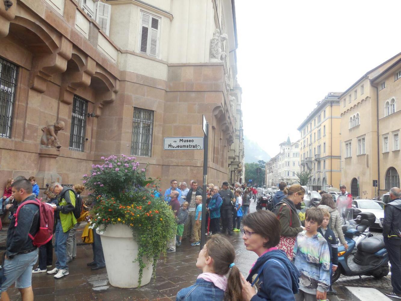 We were able to arrange with the hotel to leave our bikes in the cellar past check out time, so we could go to the Museum of Archeology for the Ice Man display. What it meant was carrying our gear to the cellar, so all our stuff was down there. It sounds simple, but the darn cellar was more like a coal mine - deep down and with narrow passages. There was a special gotcha about it too. The Europeans are fanatical about saving power, and use a lot of motion sensor lights. With those, the favourite gotcha is when you go into the toilet stall. In there, the sensor can no longer see you, so at the most inopportune moment, all the lights in the place turn off!