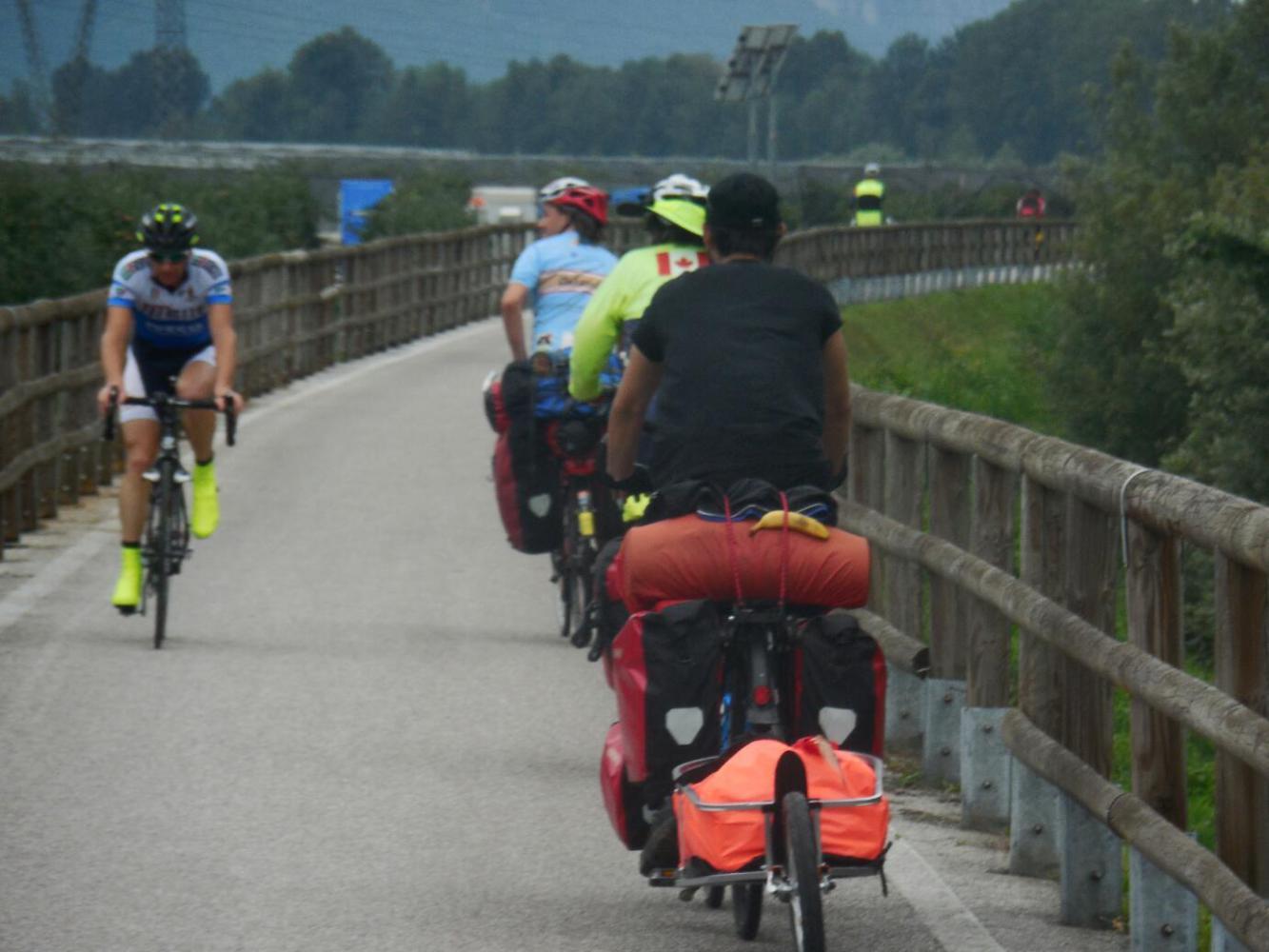Two others, were Tony and Lukas, who we met as we approached Trento. Tony and Lukas rode along with us for longer than most people have patience. Lukas was beside me, and I learned that although from Germany he was doing a Ph.D. in Economics in Dublin, having also studied in Paris.