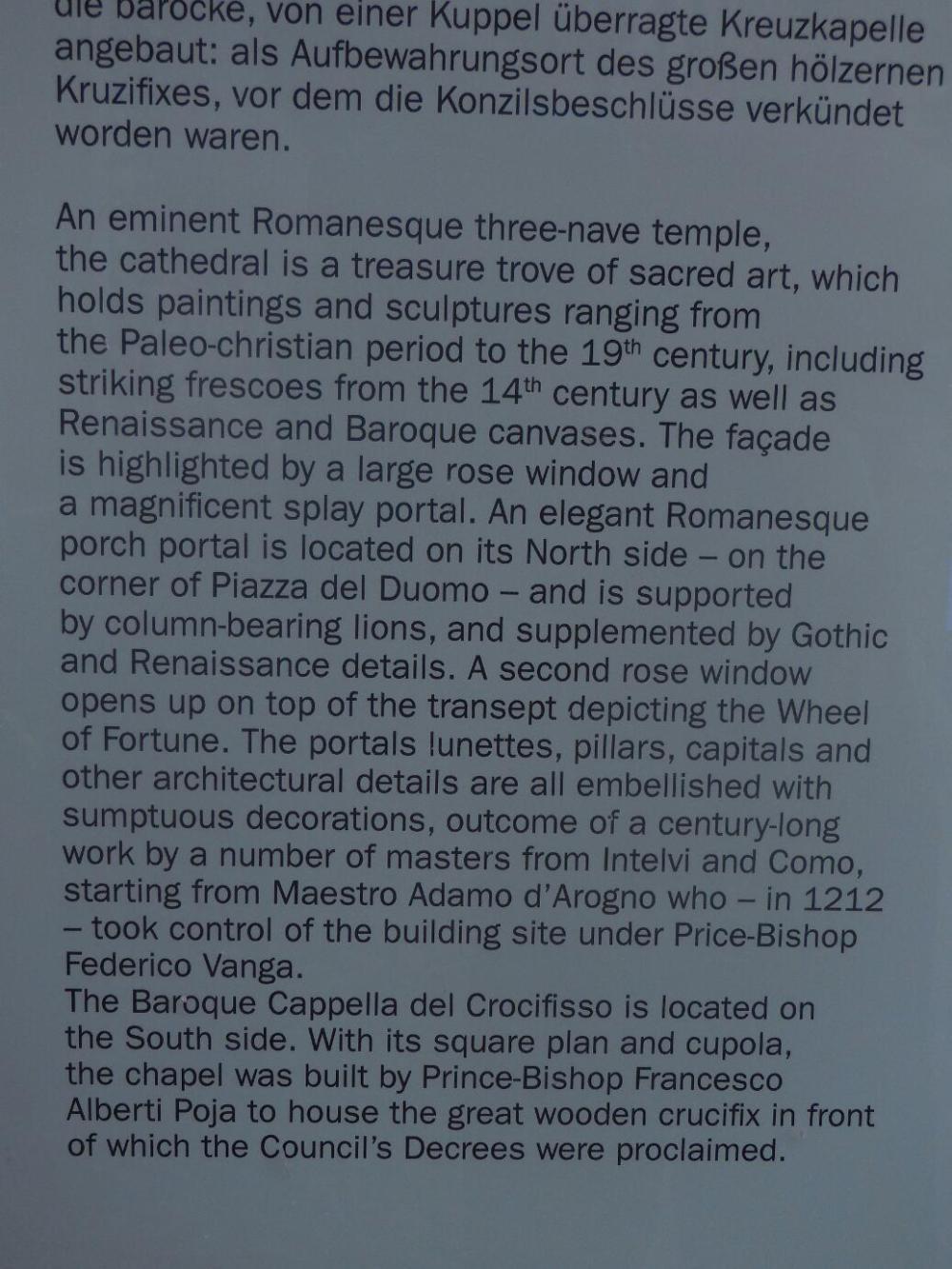 The info panel outside the Dom was, as usual, quite complicated. I am putting a shot of it in here to give the idea. On of the main things we noticed was the finger bone of Saint Paolina (1865-1942). I am not sure what her claim to sainthood was, but apparently she is currently available to intercede on your behalf. Hang on, Dodie is currently reading the Italian language card on her that she picked up - ok, the saint founded the Little sisters of the Immaculate Conception, and died in Sao Paulo Brazil. (Internet permitting, we will check that!).