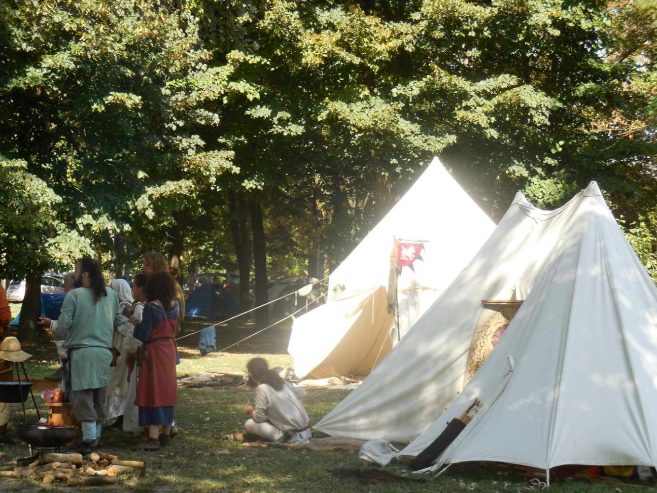 Part of wiggling to and fro to get ot Parma had to do with avoiding big and dangerous bridges, such as the one at Casalmaggiore. We were directed by Bikeline to cross the Po at Viadana, but it had the exact way to do that wrongly mapped. The long and tall bridge required a certain trick to get onto it, and we used a lot of time looking for it. One advantage of wandering around under the bridge was that we got to see what seems to be a European hobby - dressing up as Romans, living in tents, and having stalls selling Roman related goods.