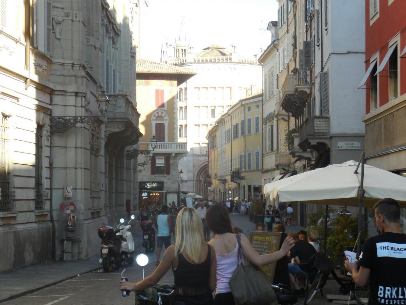 We made our way to the Tourist Information, for we had satisfied ourselves that there was no camping within Parma. We specialize in arriving at Tourist Information ten minutes after closing, no matter when closing is, and we were successful this time as well. We do our best Booking.com work standing outside closed Tourist Informations!