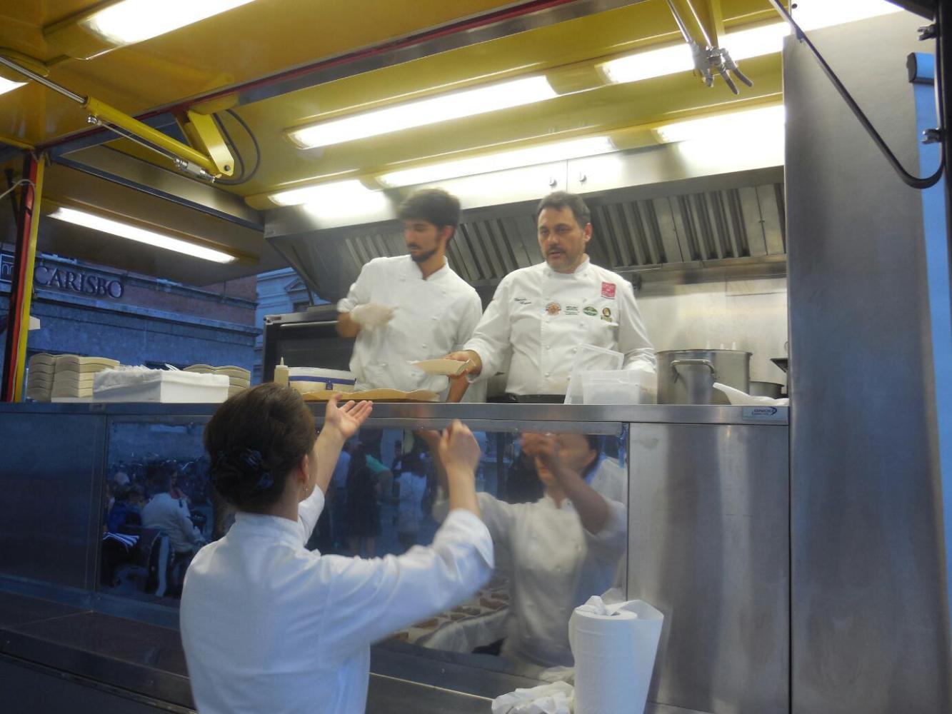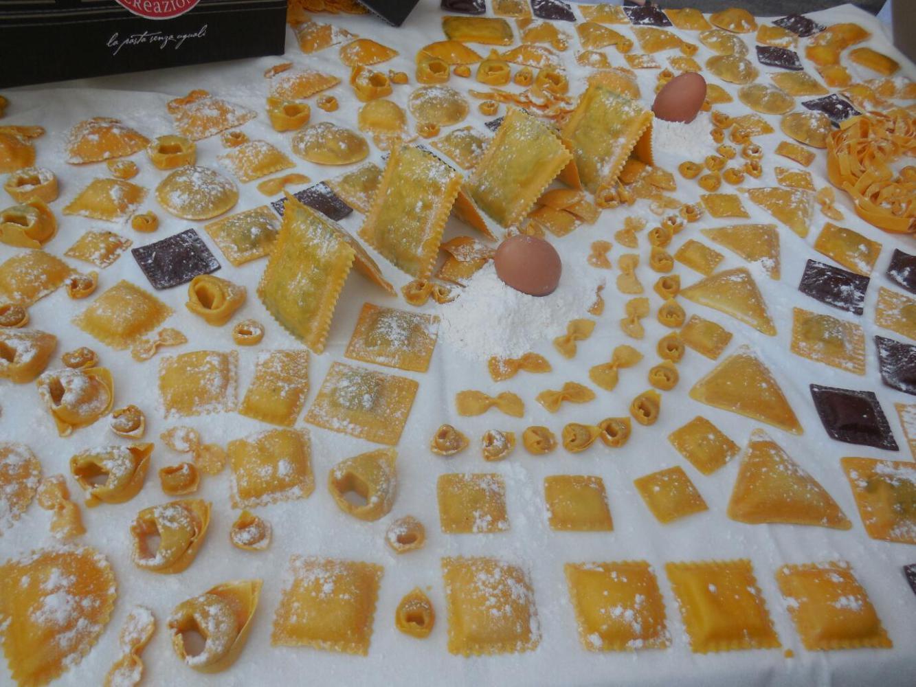 We dumped our stuff rather quickly and headed back to the square that had the tourist information, Piazza Garibaldi. The reason was that while there we saw a major set up of local food and wine display, testing, and sales. There was a huge expanse of tables and staff with all kinds of wine bottles lined up, and there were dozens of bicycle based display carts from which producers were showing their cheese, pasta, vinegar, and olive oil products.