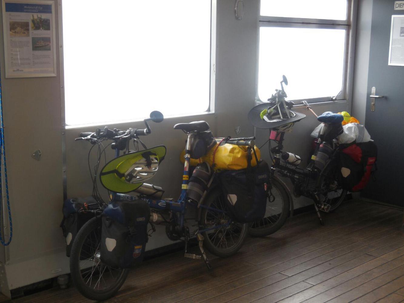 We spent our time during the cruise first off trying to plot where we were, since the ferry criss crossed the lake and stopped at every little town. Each town, of course, was very lovely, so it was a matter of going out on deck and trying for a good shot, even though it was frequently raining and misty. And of course, our favourite game (perfected on the trains) is trying to see where the bikes would have been, and then tut tutting about how impossible that would be to cycle.