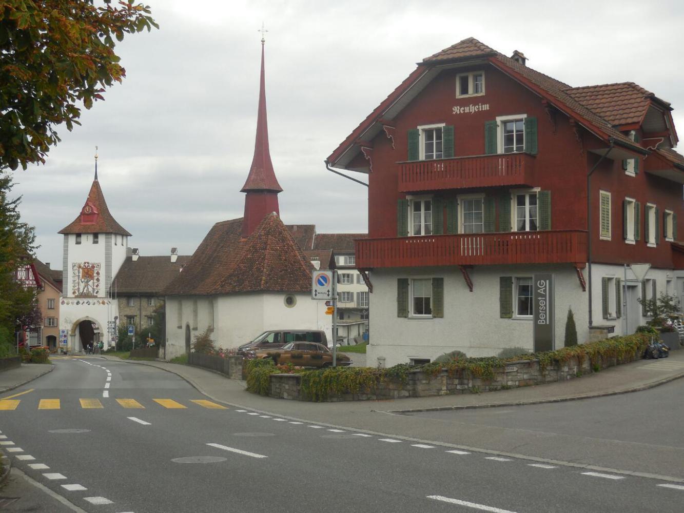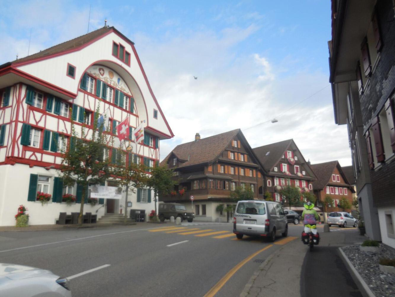 That phase of the ride ended as the suburbs morphed into what must have been downtown Aarau. It was never clear, since we never saw any tall buildings or a clear commercial section. There was just sort of more traffic and more buildings. We passed through that and were following the GPS to the guesthouse we had identified and booked, on the other side of "town". We were almost there and were back on low traffic roads.