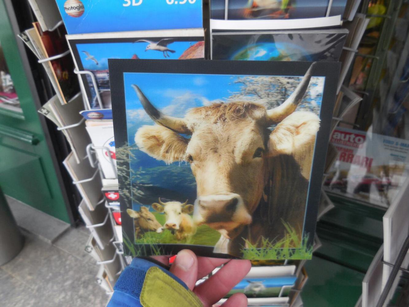 We stopped at the Sempach gate to buy some postcards. Pictured below is one we did not get, because it cost CHF 6.60! However, it had a 3D image of a Swiss Cow - great!