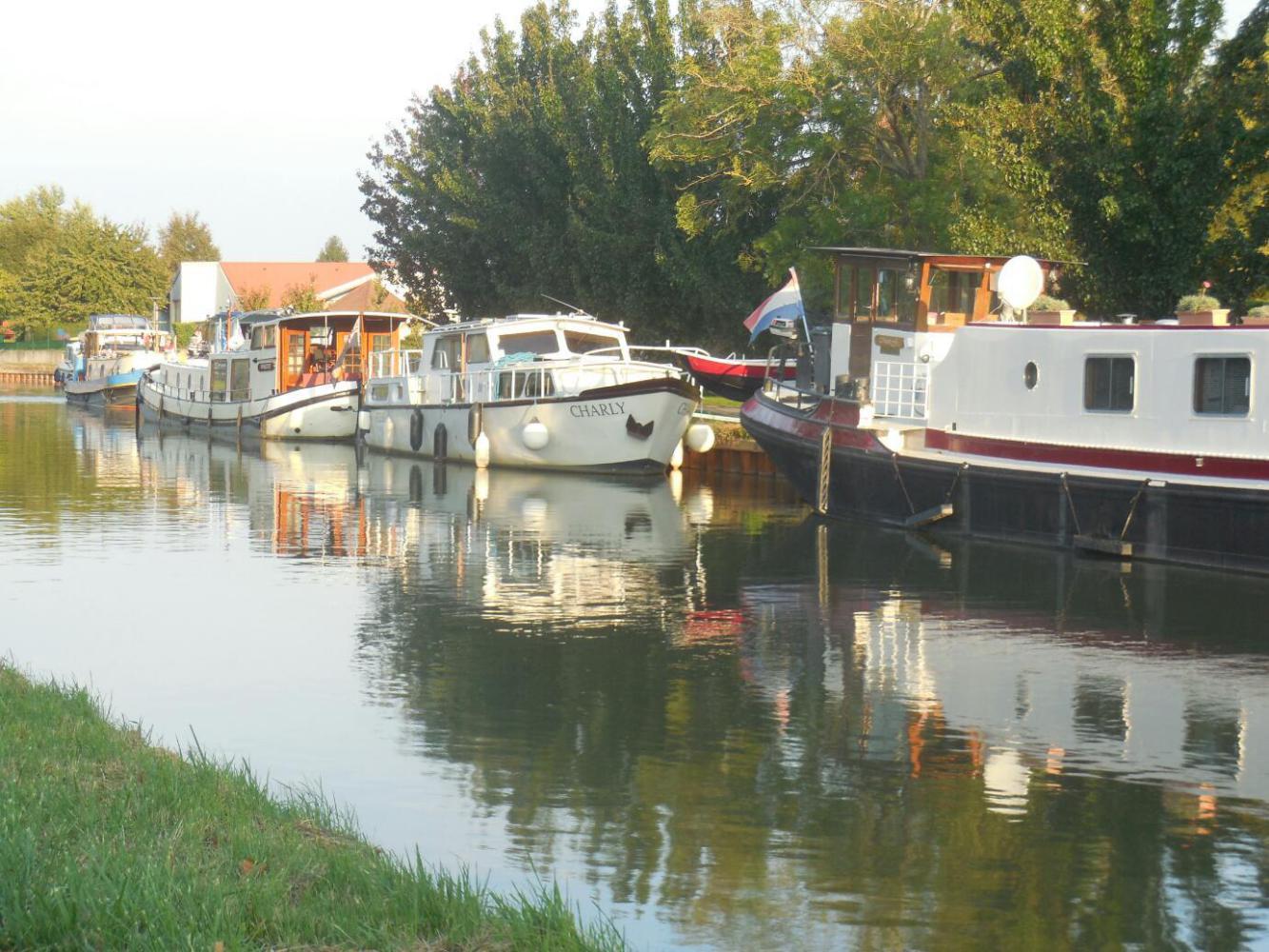 We were able to get back on veloroute periodically as we headed for Montceau, but as we got to the town we found not a well defined cluster of buildings around a church, but a large and spread out area, boasting even box stores and a McDonalds. We took steps to be along the Canal, because the hotel we were heading for was known to be right on the canal. Still we passed through what felt like a lot of town before coming to it.