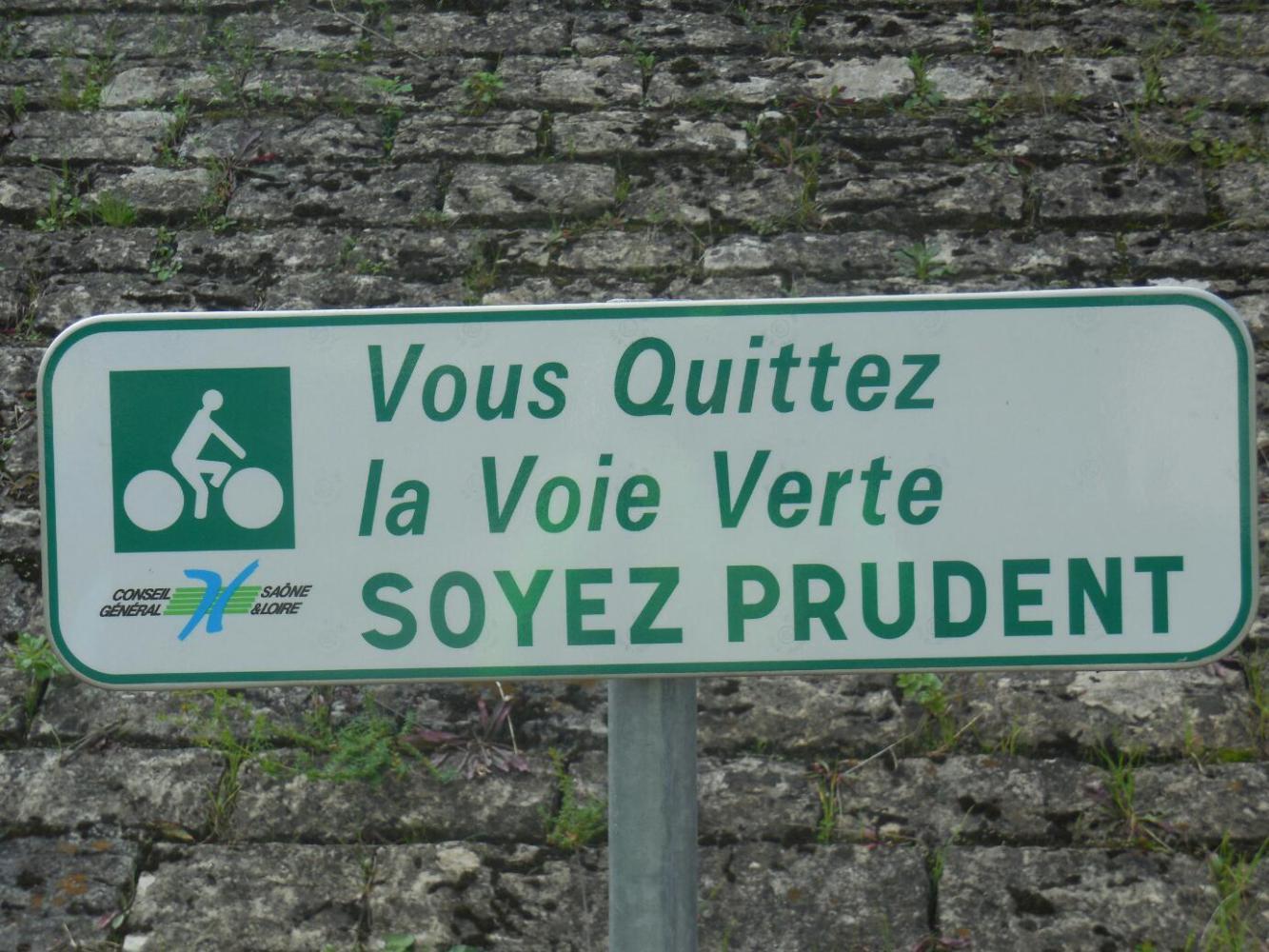 We knew very well from our own previous blog, other blogs, and the hotel staff the difficulty of finding a bike route out of Chalon. So Dodie was well prepared with a big red line on the city map, and the GPS track. Even so, we had to course back and forth a bit, finding the route over the first three km. Then suddenly here was an EV 6 sign saying this way to Chagny (and by the way - where ya been?). We quickly realized that after the 3 km we had left Chalon and were in Champforgeuil.