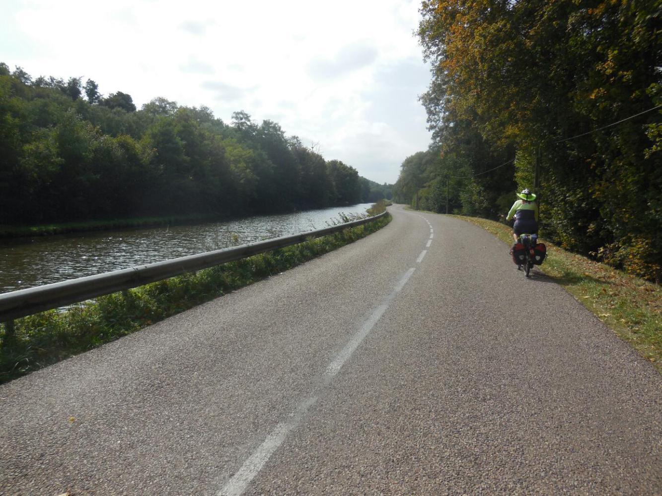 Ok readers- friends, children, grandchilden, D974 was not actually a crazy decision. It really was little more than the towpath by the canal that we had already been following, widened and with cars permitted. But it was not at all a major highway, and on this Sunday actually had little traffic. Also, unlike in Italy, we repeatedly listened to drivers throttling down and waiting for the safe way to pass us. We never felt threatened on this road.