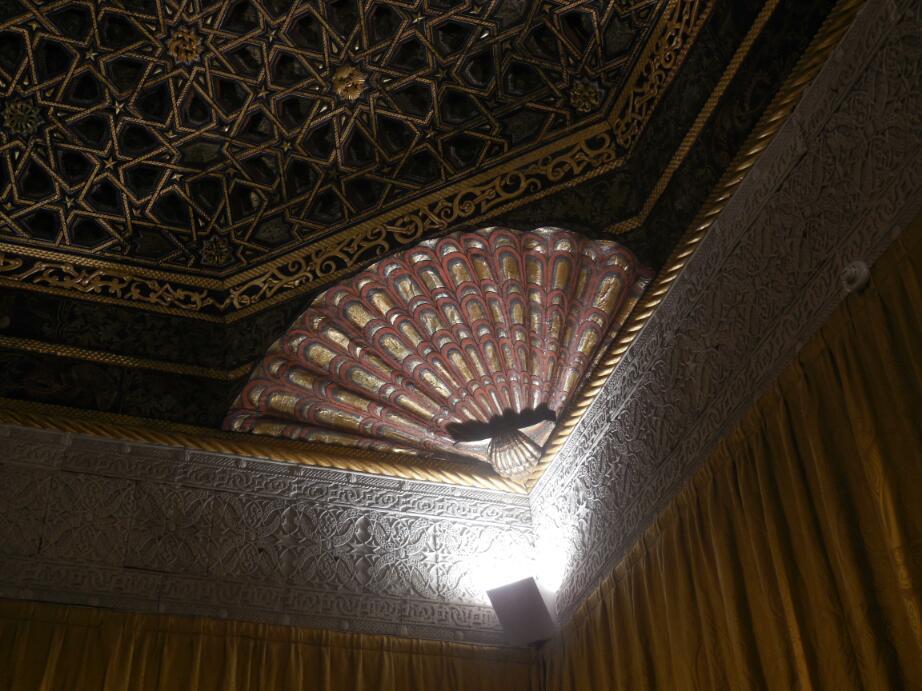Still we did get a pretty good sense of the whole thing. Again, picking on just two things to mention - there was a complete dining table setting. Gorgeous. There was also a ceiling that Carvallo had somehow sourced in Spain (his native country) and which had come in thousands of wooden pieces. The ceiling blends Moorish influence with Christian, the latter being symbolised by four Coquilles St Jacques in the four corners.