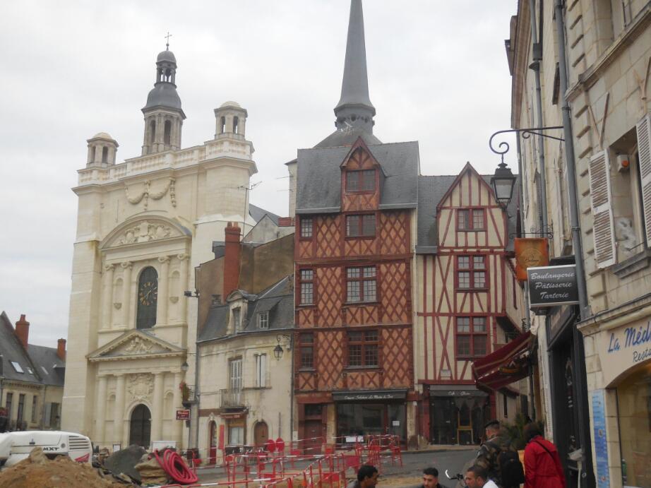 Candes St Martin is a beautiful village where the road narrows and the buildings are white. But its main feature is the rather discreet St Martin church. This is the spot where St Martin, Archbishop of Tours died in 397 a.d. The church that stands there now is not that old, having been built in the 12th century, but surely on the ruins of former churches. The church seems very old indeed, because of a lot of weathering. However, there is also the fact that the heads are knocked off the majority of the statues on the outside. We are guessing that this damage was done during the French Revolution.