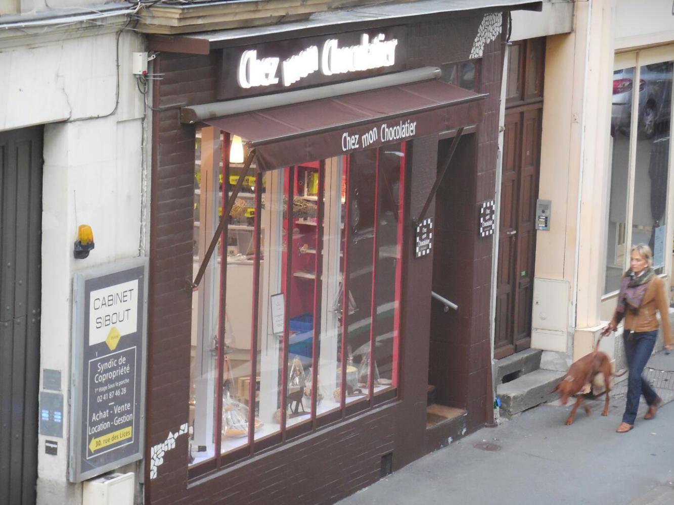 The hotel that we found, sitting on that slate block, is on one of the main streets of the old city. (Hotel Delice - 50 euros). Across the street there is a Chocolatier. Guess what, it is also in the Tourist brochure. They make a chcoolate coated nougatine, tinted purple/blue - to resemble the colour of ardoise. They seem to call this colour "bleute".