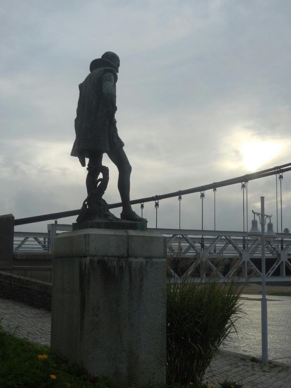 We somehow decided that Ancenis did not have much to look at, but we did that without (and I guess this makes sense) looking at it. We did see the statue of Joachim Du Bellay ( a local poet) which stands watching the bridge in Ancenis. This statue is only famous (to us) because Michel pointed it out as a possible meeting place. Meeting in Ancenis became a non-issue when it turned out that we had reached the town the previous night. So now we would set out in the direction of Nantes, while Michel would leave from near Nantes and try to find us.