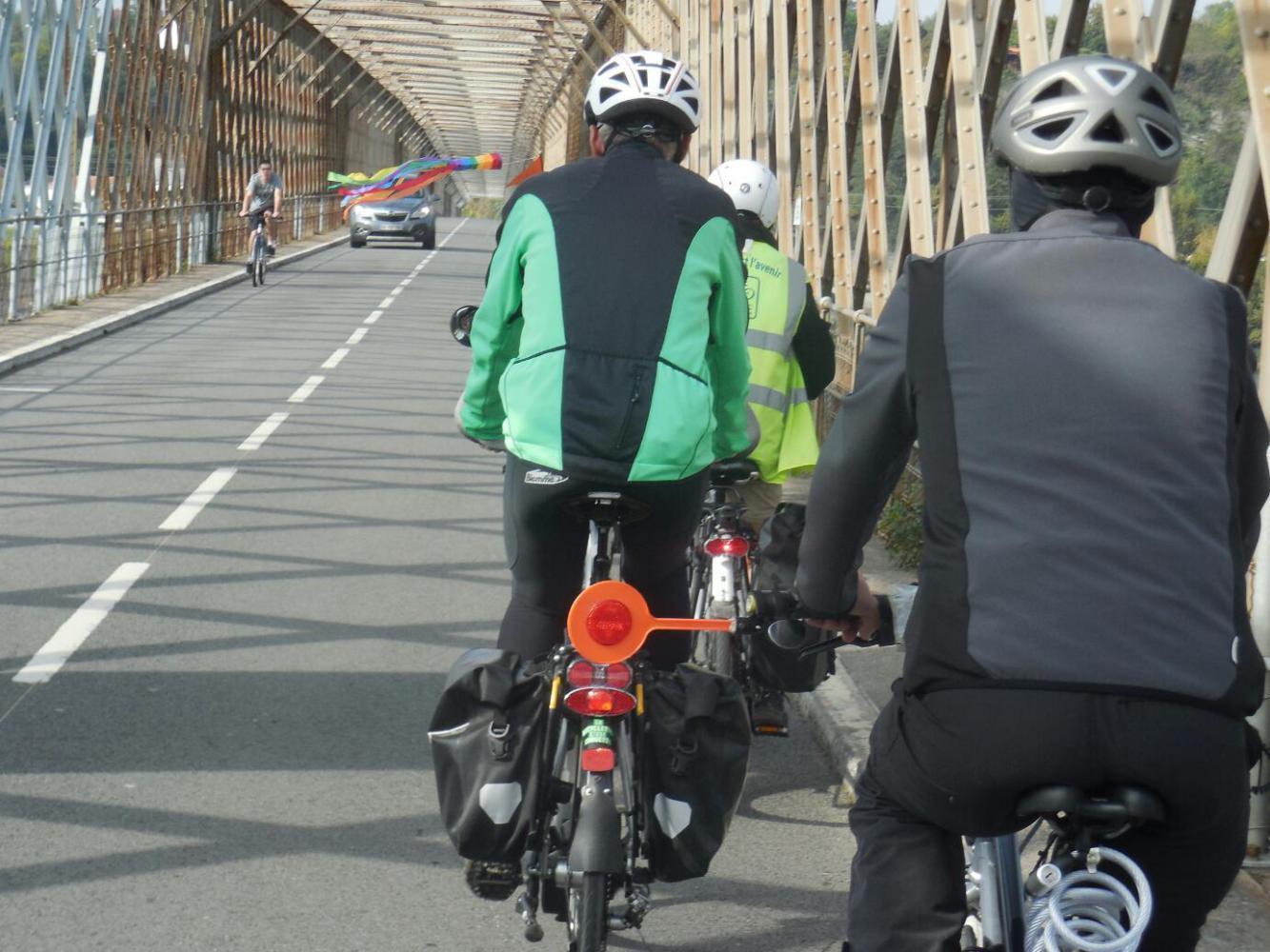 We all set off after a while, and it was great to once again see Michel travelling along the Loire in his Scorpion trike, with the Rohloff hub. There was a new addition this time, a colourful wind sock. I especially liked this, because at least when the wind was right, the thing would blow in car drivers' faces.