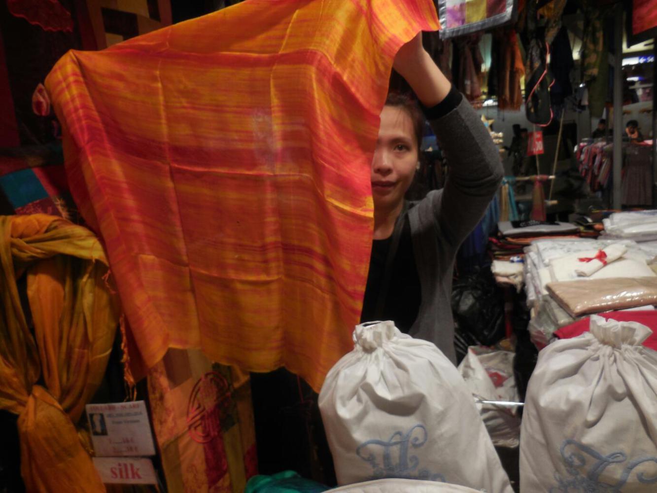 The Vietnamese lady seemed a perfect foil for a silk scarf, so I got her to hold one, for a photo. This then gave an opportunity for a bit of conversation, and I asked whether she had been born here, and if not, how it was she spoke French. It turned out she had come from Vietnam 9 years ago, and had basically learned French here, though her grandfather spoke a bit, owing to the French Vietnam involvement. Her grandfather actally spoke more Russian, due to Soviet involvement in the country in the 1960's. The lady then mused that in the past language skills had been influenced by political requirements, while now they were economics driven. It struck me from the comments that it was quite possible that this train station market seller could very easily be highly educated. One can not make assumptions about the skills and knowledge of any person, based on surface appearances. Who knows, one day two bright yellow seniors on toy bikes might pedal into someone's life, and it would (hopefully) be a mistake for them to assume that these people were just plain crazy.