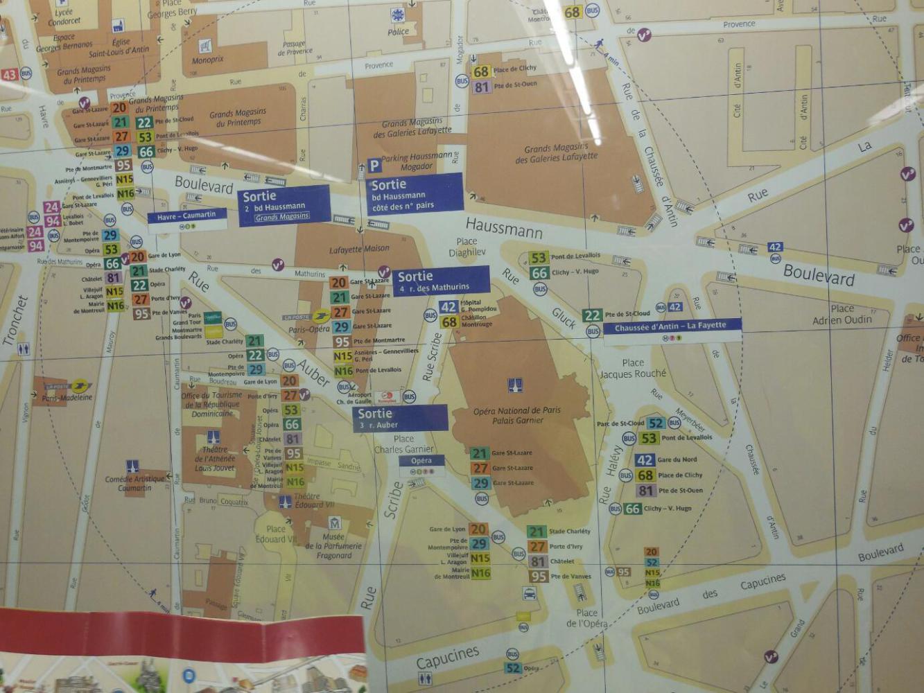 We had agreed that in honor of Dodie's birthday we would do no squabbling today. It seemed an easy objective, because now we knew what we were doing. All we had to do was to walk a short distance down Rue de l'Opera to pick up the Hop On Hop Off Blue Line tour to Montmartre. So we walked down there - a straight shot between the Opera and the Louvre, despite the webwork of adjoinng streets. But after a while - no Blue Line.