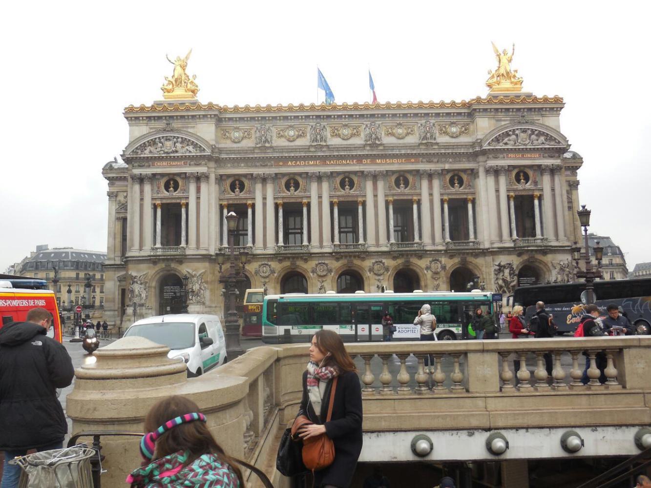 We know felt we knew the ropes about buying a ticket, going through the turnstyles, getting on the right rain, and showing up at the Opera, in the middle of Paris. One enlightening interlude in that came when we stopped at the stall of a vendor who was set up within the Opera station. The lady was of Vietnamese extraction, and she had various Vietnamese products, including silk scarves. Scarves have been and are a staple of Paris fashion. Normally we (us and Joni) refer to them as "flitty scarves", though in this season we are seeing that some vendors have slightly heavier ones as well.