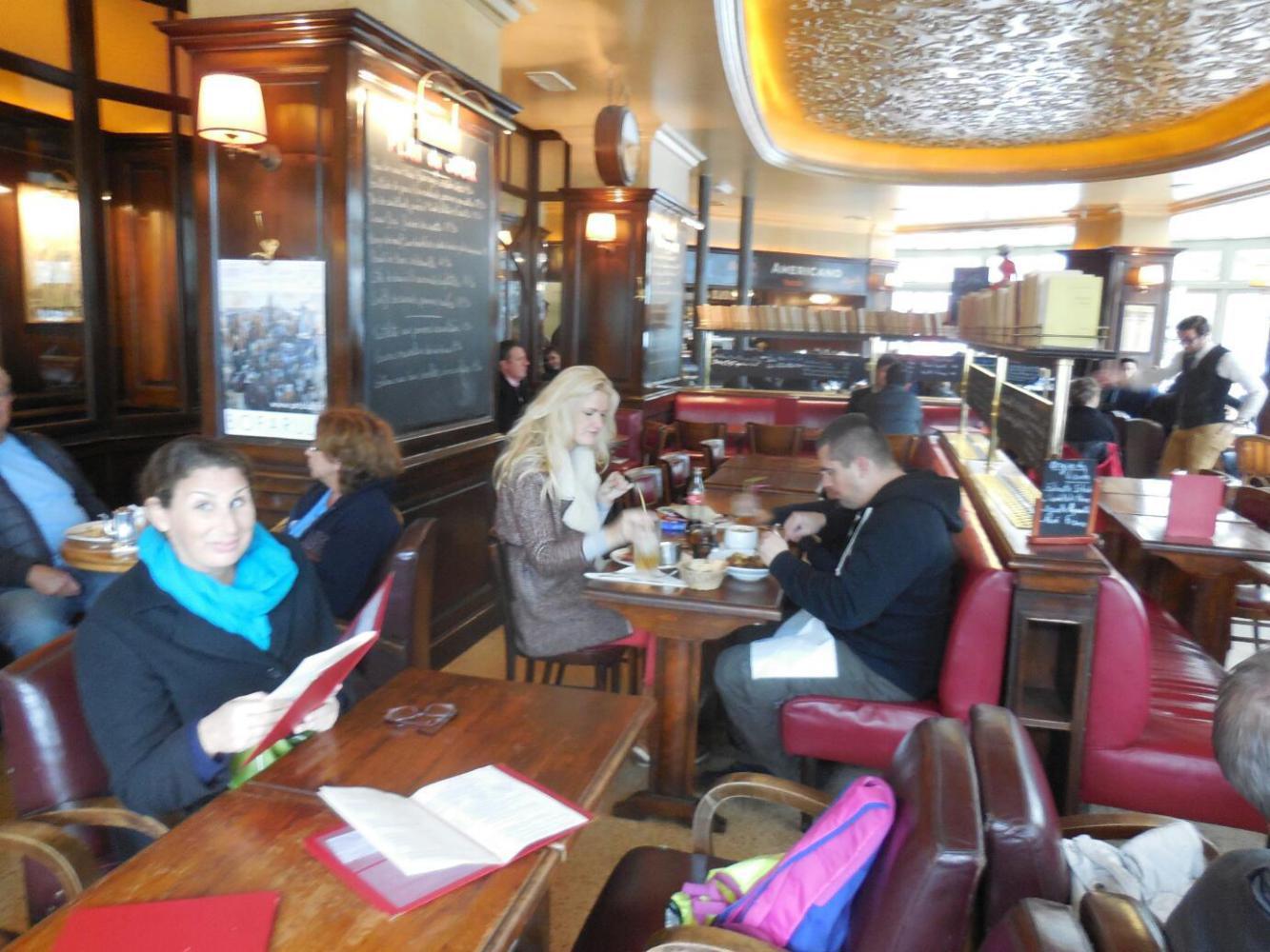 We carried on with, as yesterday, some solid and good food. Dodie in particular had been dreaming of a hot French onion soup while freezing on the bus, and she got her wish. Maybe it was the cold, or the festive day, or the cafe, but we seemed to call for quite a lot of yummy stuff. I think Dodie would probably appreciate me noting here that it was Joni and I doing the calling, and she was very restrained. She did not even choke when the bill came!