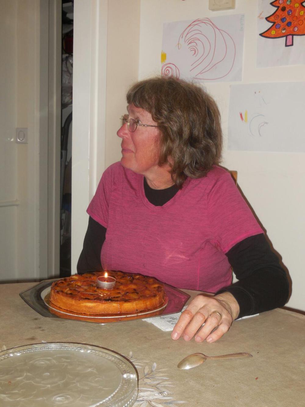 It worked out really nicely that we got to have Dodie's birthday in Paris, and with Joni, Didier, and Brigitte there as well. Brigitte presented Dodie with a really appropriate gift from her and Didier, a calendar featuring 52 villages of France. Not only is there a picture from each village, but also a description of the place and the region. Later in the day, after a considerable amount of deliberation, Joni and I settled on an apricot pie "birthday cake" from one of the many bakeries in Maisons-Lafitte.