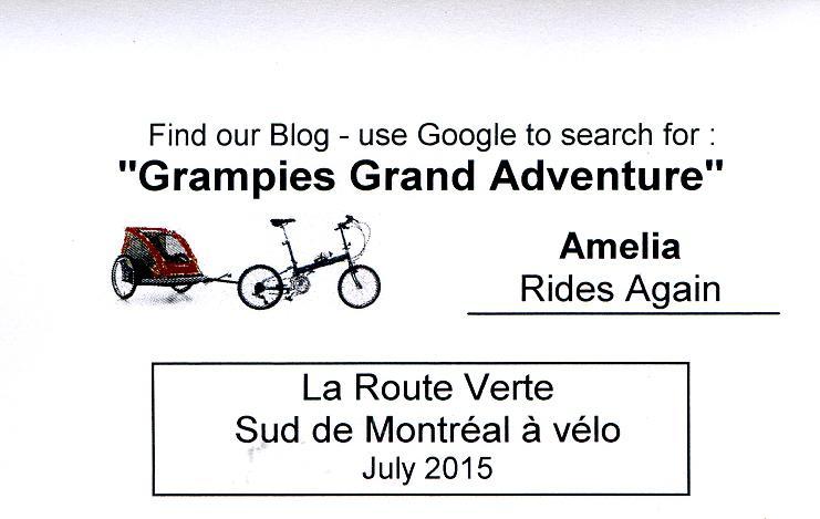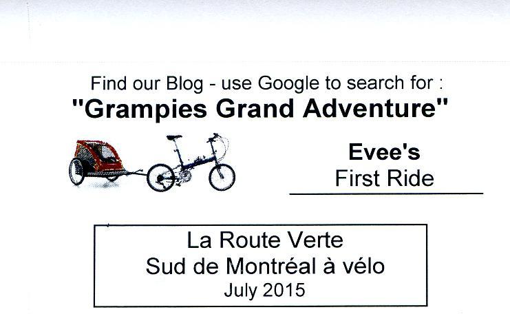 This year we do not have Wee Hoos available in Montreal, and besides, we are not sure that we would be able to get little Evee to ride one. Last year she was definitely in the NO camp. So we are going with a trailer. The trailer is red, but in our first version we had a yellow one on the card. We actually could not remember the colour, but a call to Montreal confirmed it is red. We had no hope of putting over a yellow trailer on a card, Amelia and Evee are far too sharp for that. So out came Photoshop, and I painted the trailer red!