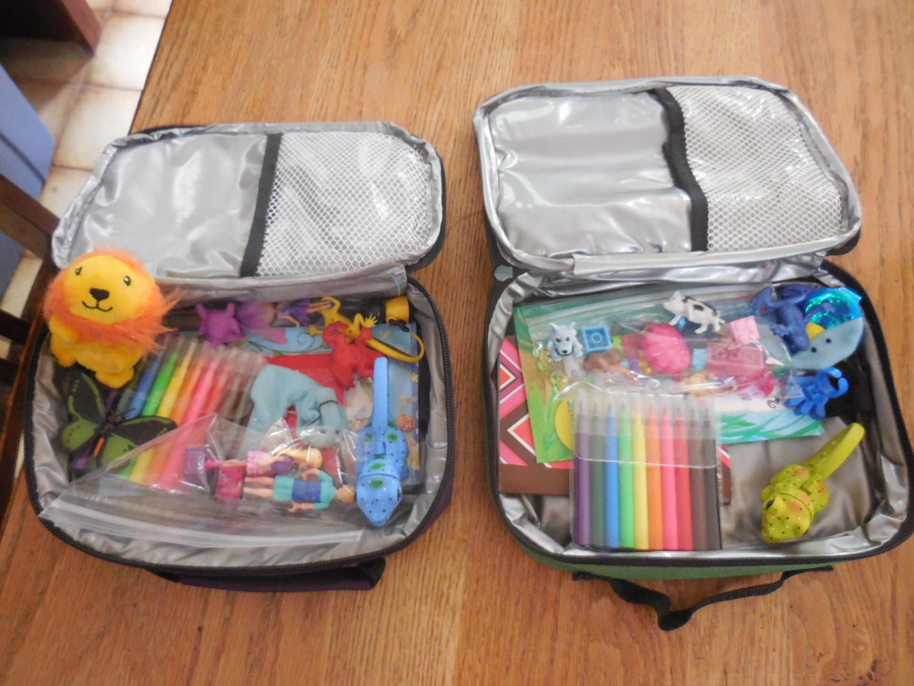 Quite aside from what might be found while actually on the trip, each kid starts with a bag of amusements. So just by signing on, Evee is already the proud owner of one of these: