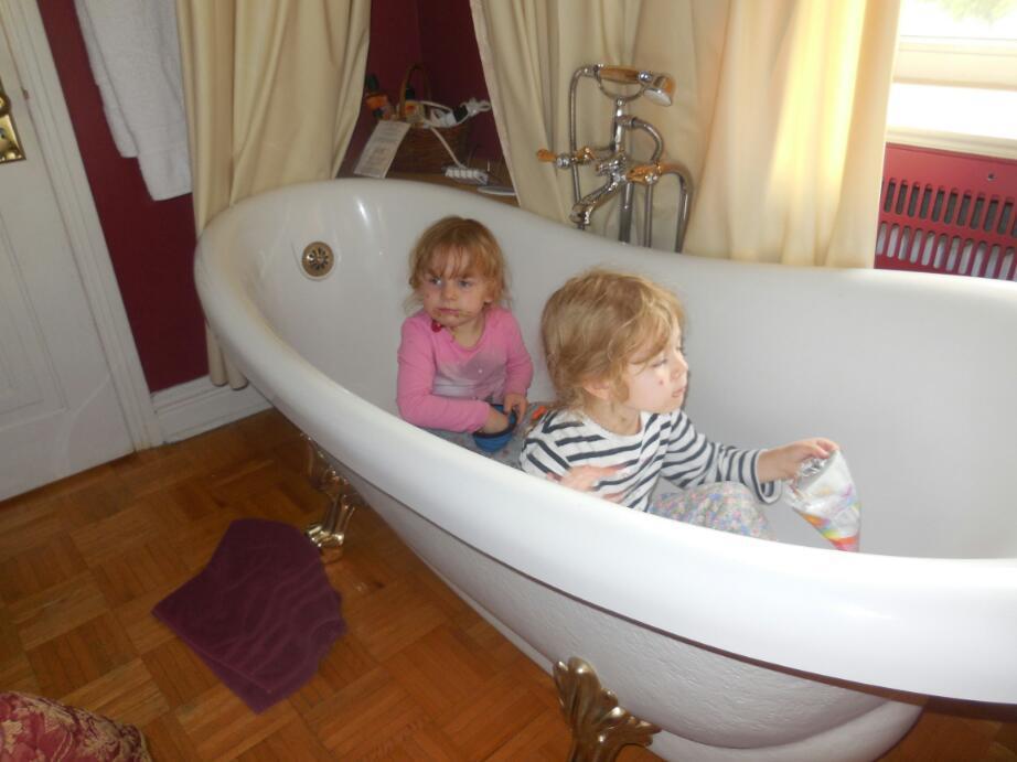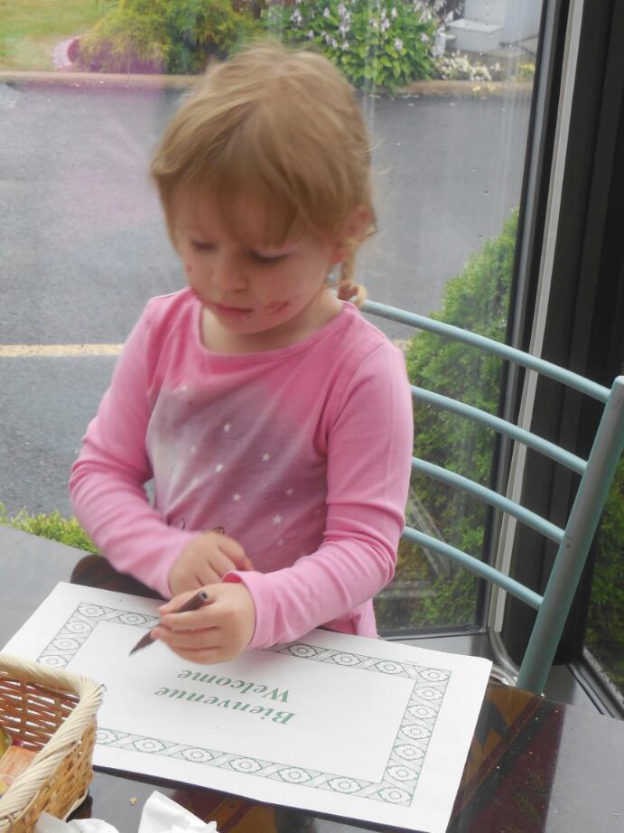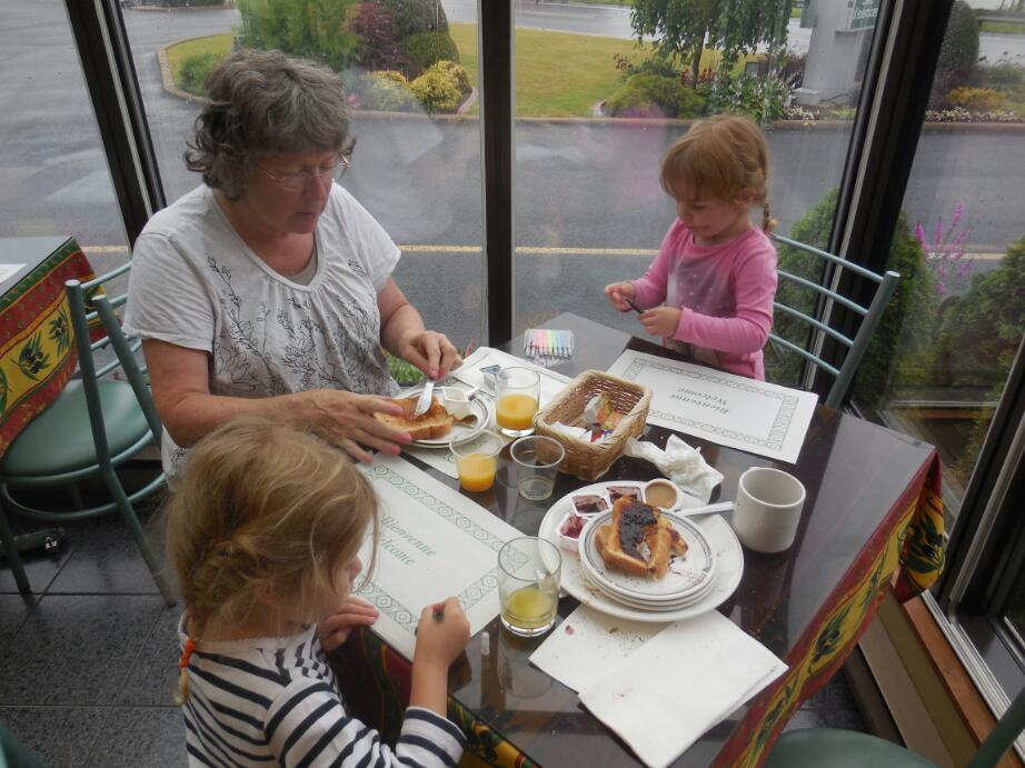 Of course a few bugs and some mud could not deter the Grampies from their appointed return to Chambly, and we easily found our next stop, the "A la Claire Fontaine" B&B. We had a quick intro to the proprietor and a look at our room. Just like the Osprey Inn in Harrison, this was well appointed with knick knacks and pot pourri scents, and also featured a claw type tub beside the bed!