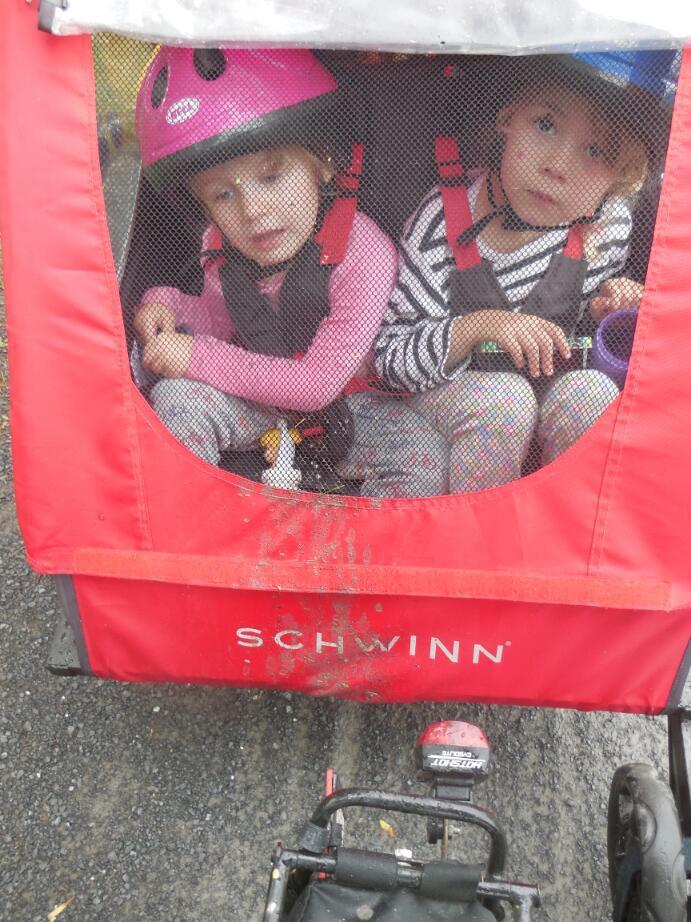 I guess even the easiest short cruise can become a challenge. Usually this takes a flat or other mechanical problem. But halfway through the short ride, to the high rolling resistance of the load was added mosquitoes, flying into my face. I began to think "Waitaminute, this is supposed to be a dead easy jaunt with the kids!"