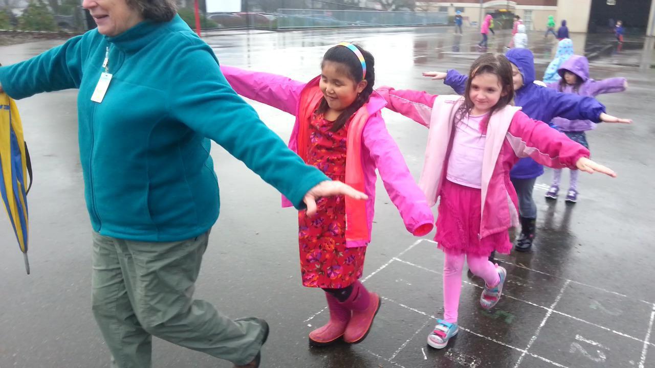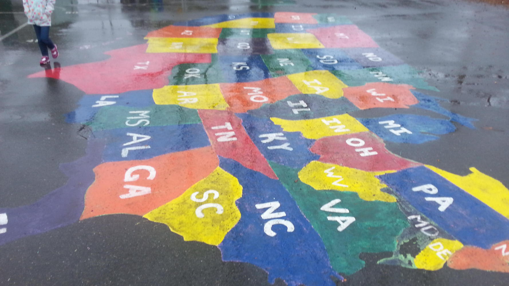 As we are waiting for our shuttle to get the cycle trip rolling at 3 a.m. tonight, we made a visit to Avi and Violet's school. In the playground they have a map of the US painted on the pavement. So the topic came up as to where we are flying to. With a bunch of kids following, we flew cross country (layover in Houston!) to Fort Lauderdale,(cycled around Florida), then up to Montreal, back back to Seattle. However in the photo you see Dodie piloting the kids around Europe. They did make it back, though even on the playground you can see how far these distances really are! We hope to make a reappearance in the Grade 1 Science class with a presentation on organisms of the Everglades.