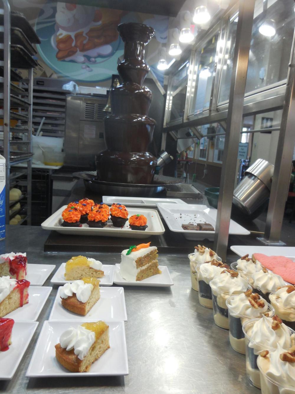 The trick comes, however, from the very abundance that in general we strive for. Once you have put down your $10 there is no limit to what you can eat. How many people can face that and just take a little salad and chicken, with maybe a small cookie and some coffee? We can confidently say not us, and not one American that we saw in the place. In our case, we think we inhaled a day's worth of nutrition in the first ten minutes. Around us, there were some real professional eaters. We could tell this from their heaped plates and groaning chairs. What's more, they had brought their kids in for training. At the next table, one pre-teen put away two huge plates of macaroni and cheese, before going back for some pizza and dessert. The work of the staff cutting up those fruits and vegetables was completely ignored.