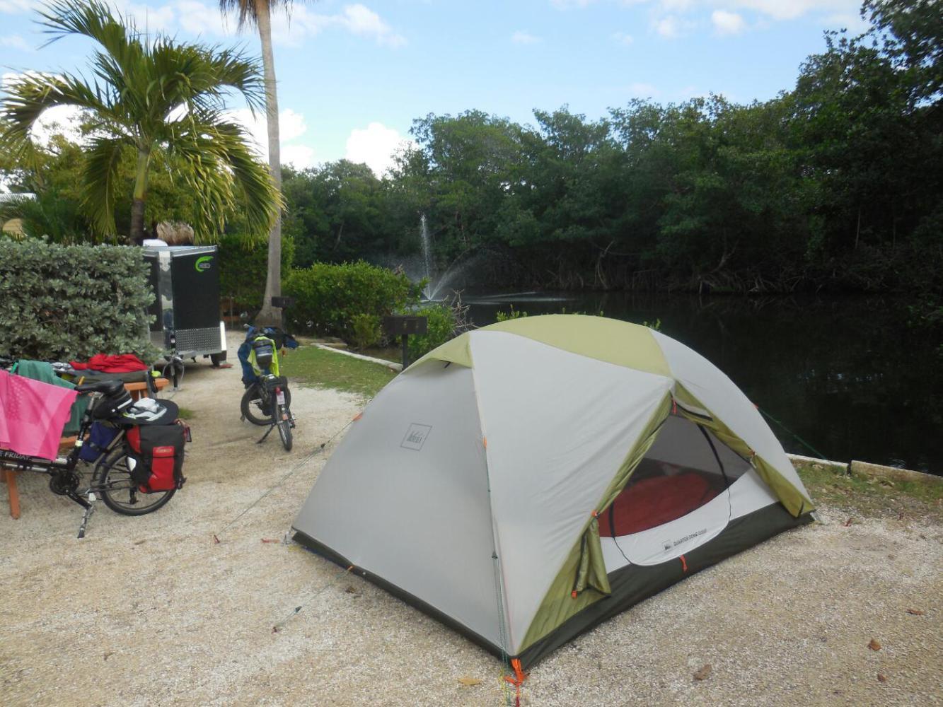 Our campsite is again by the small waterway. Unlike last year, we are not looking for gators in it. Now we know where and when we will see the gators.