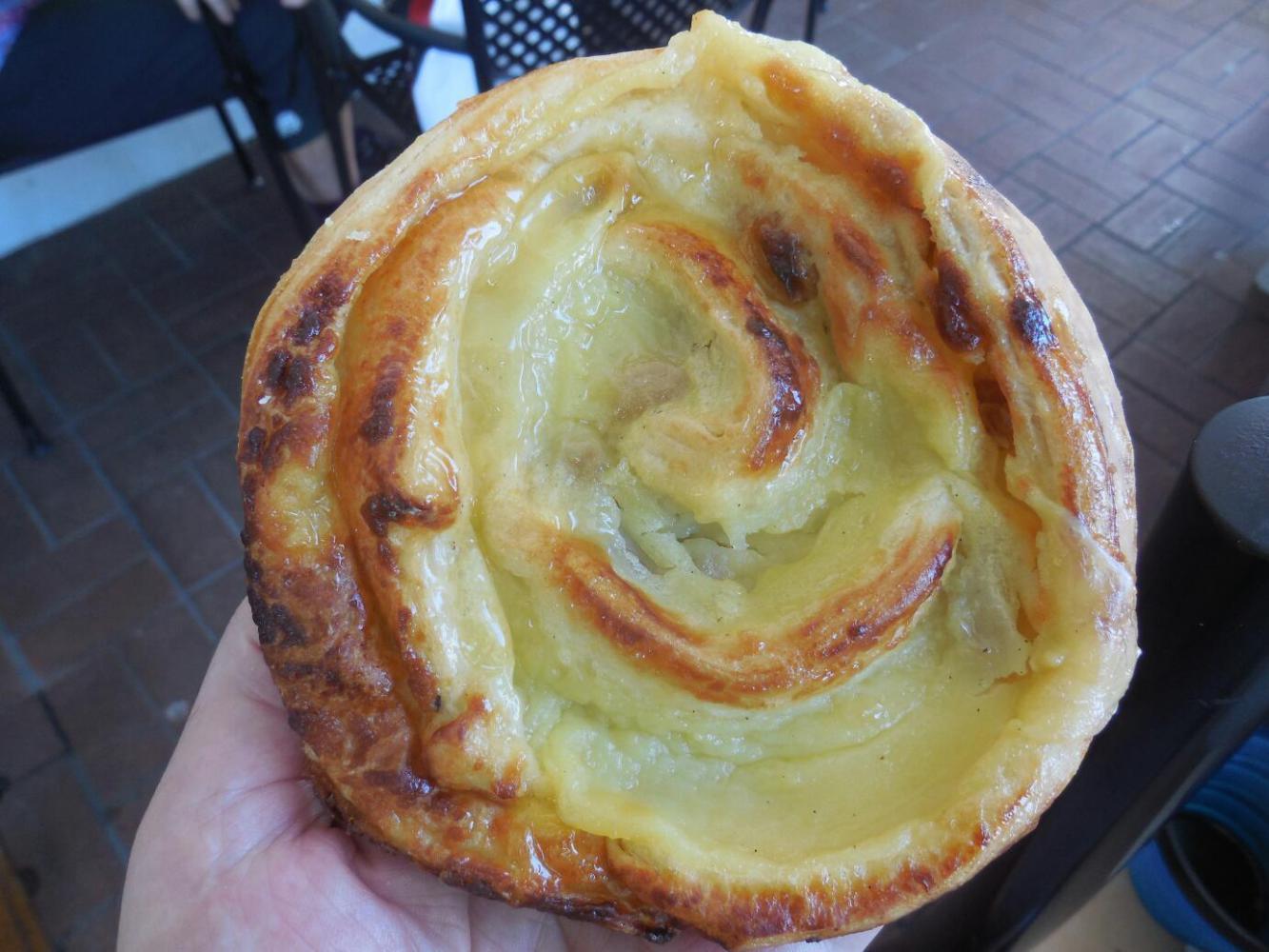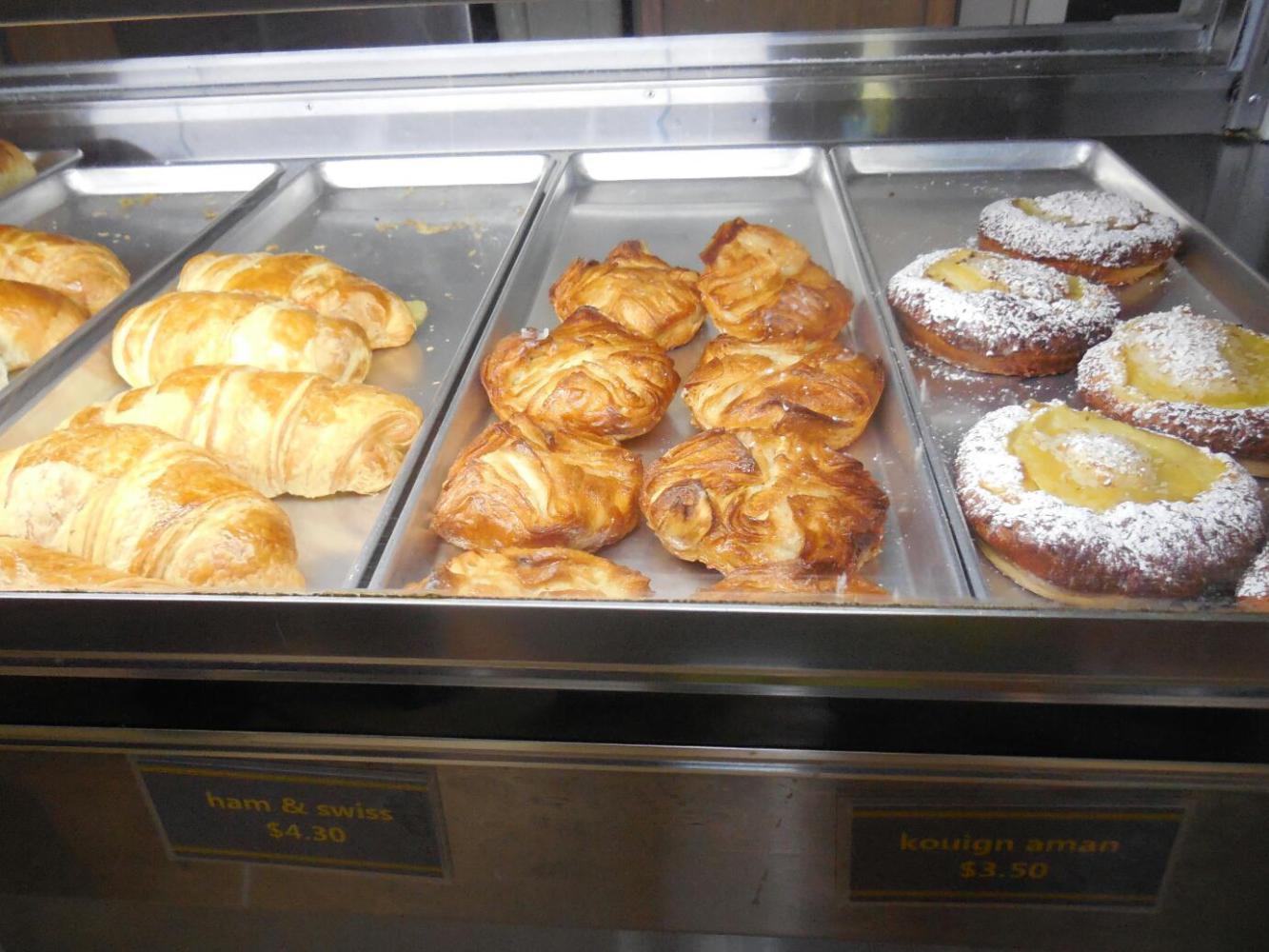 Michel had listened to me whining about bakeries the evening before, and so had duly researched the matter. He came up with a place he had not been to before, called Croissants de France. This turned out to be an absolutely no fooling French bakery, identical to what you find in France. The only difference was that the server behind the counter was Cuban, and at least one label was in English, saying something like "raisin bun" instead of "pain au raisin". So I tried it out on the Cuban lady, asking for "pain au raisin". She smoothly went for the correct bun, prompting me to ask how she knew which I had been talking about. "After eight years here", she replied, "I know". She also told me that the baker was from Bretonne, and other workers were from Normandie and Paris. They sure knew what they were doing! Even the Kougin Aman, a rather esoteric croissant variant, was spot on, terrific, just as good or better than at the bakery named Kougin Aman, in Montreal.