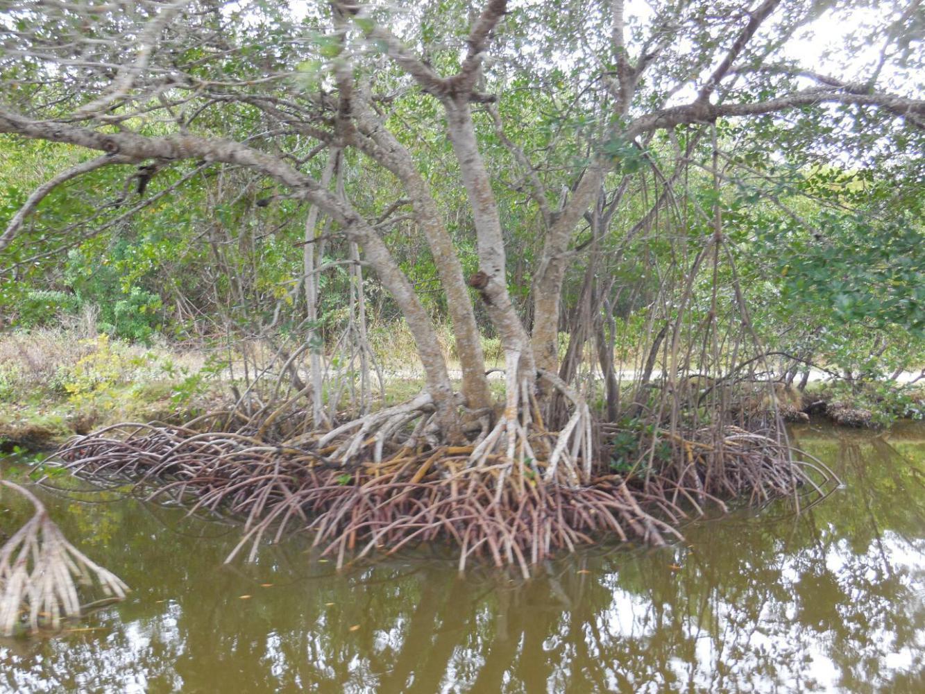 At Flamingo there is a salt water marina on one side , and a brackish mooring on the other. The brackish is in the Buttonwood channel, which leads to Coot Bay, the Tarpon Channel, and then to Whitewater Bay. The Buttonwood, which is man made, used to be open to the sea, but the salt water infiltration through it harmed the ecosystem, and so the entrance was plugged by a concrete dam.