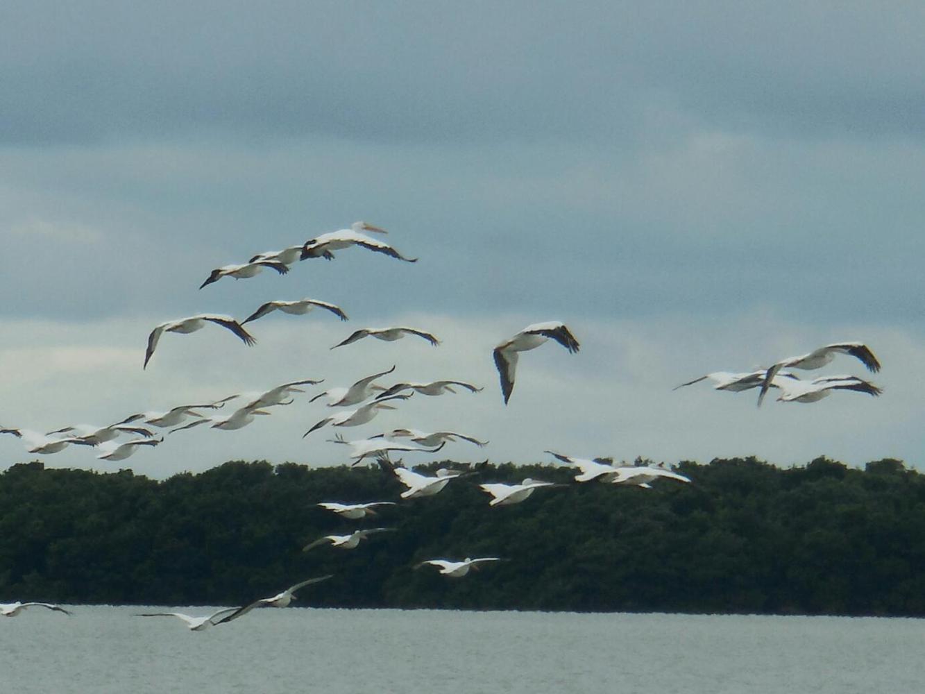 A highlight of the sea voyage was an encounter with a group of dolphins. Like in whale watching back home, we maneuvered the boat around and kept spotting the surfacing dolphins. Also at sea was a flight of while pelicans. I think I got a very good shot of them. Maye soon, you will be able to judge.