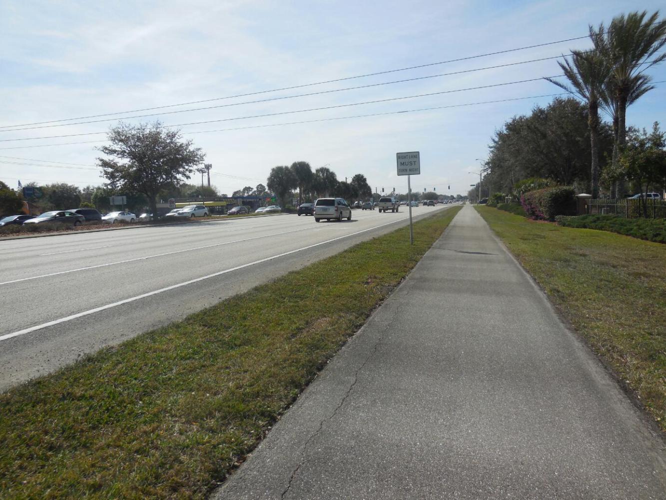 The headwind gota little tougher, so we drafted our way slowly, deeper in to Fort Myers. Like in Naples, we found broad, broad (like 6 lanes each way) avenues, and the full selection of fast food, grocery, bank, and other services. Unlike Naples, though, was room for bicycles, in the formof separated bike paths. Particularly on the Daniels Parkway and Six Mile Cypress, this was very nice.