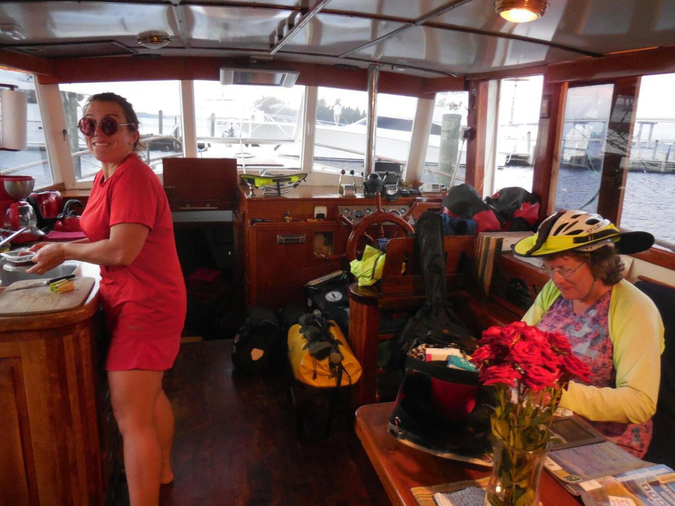 John and Kelly were super interesting not only for their knowledge of boats. They are cyclists, and also have walked the AppalachianTrail. Not only are there stories in that, but they also have a fine understanding of what cyclists or trekkers need. That starts with salad, and goes on to a shower, a place to plug in electronics, a supply of spare batteries, and a chance to crash out early. What super hosts and nice people!