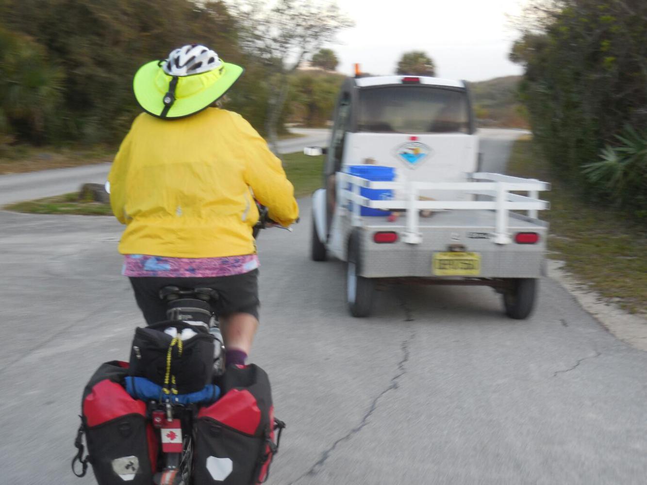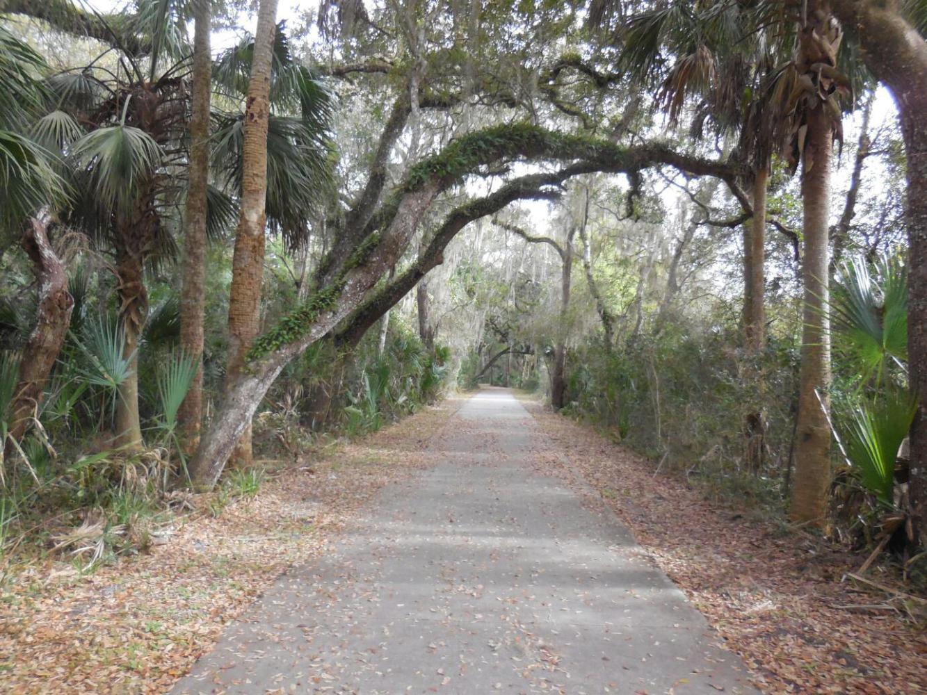 Somewhere before Palm Coast, we noticed a bike path paralleling the highway. This was broad and safe, and sometimes dove into some nice forested areas. Of course, there is no mention of this on the ACA map.