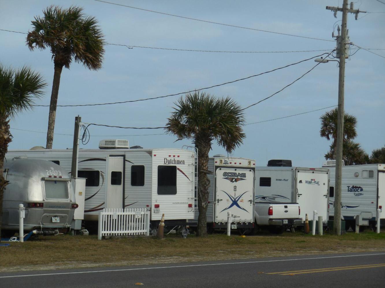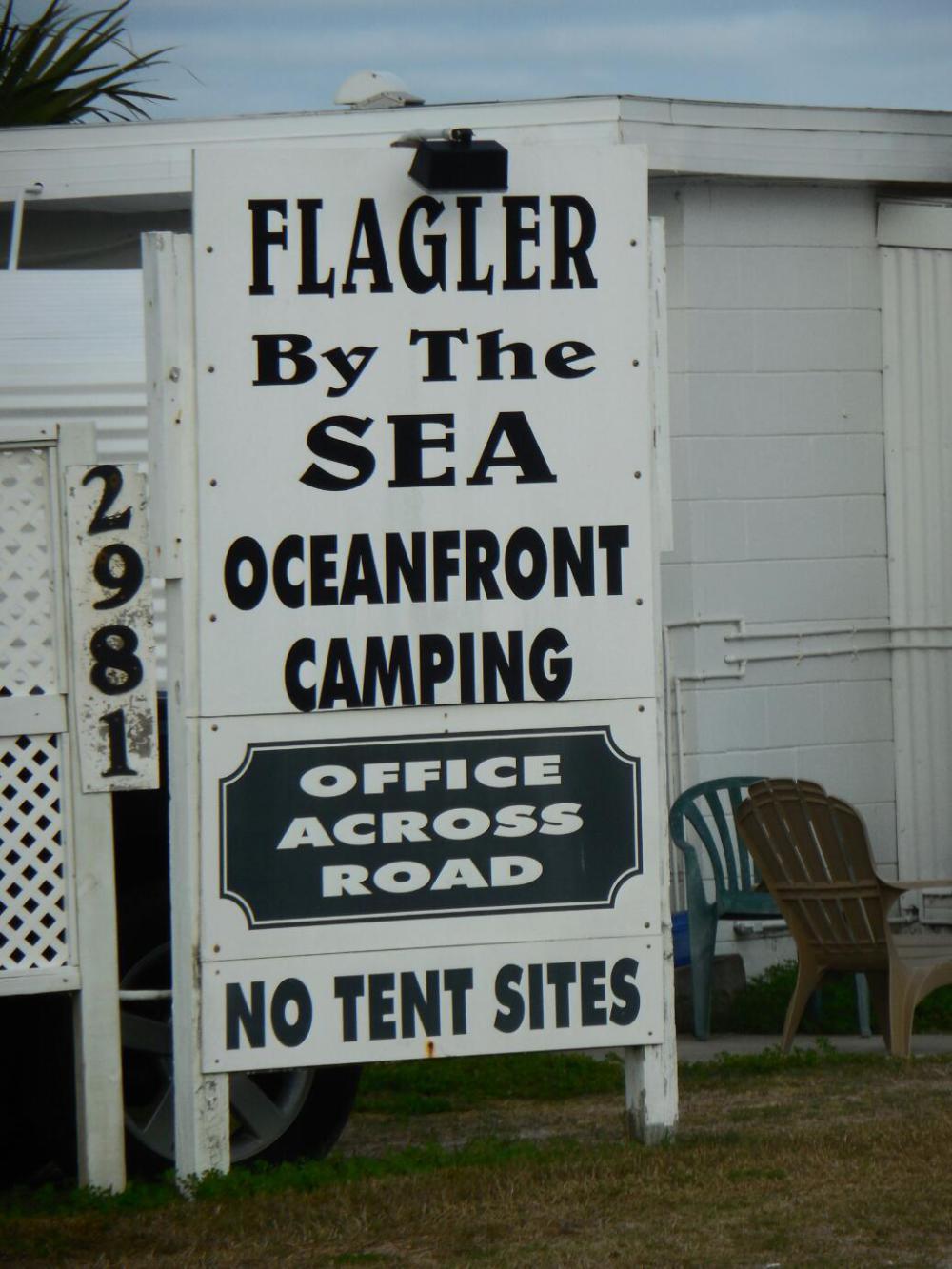 With the help of a tailwind, we zipped along nicely, and reached Flagler Beach. There are some "campgrounds" near here, but of course in America, camping does not always (or often) mean what we think it means. Here, if you are not motorized in some way, you mostly do not exist.