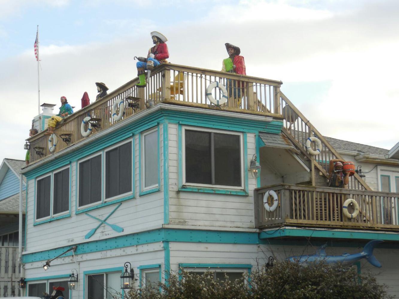 The unhelpful man from the front desk yesterday at Pirate Haus put in a repeat appearance and repeat performance, making pancakes this morning. Sheesh, what a surly guy! Had the owner been the one on the pancakes, we would have asked for a "judicial review" of the bikes decision. Instead, we slouched off and submitted a negative review on Yelp. One thing, though, Mr. Surly makes a nice pirate pancake!