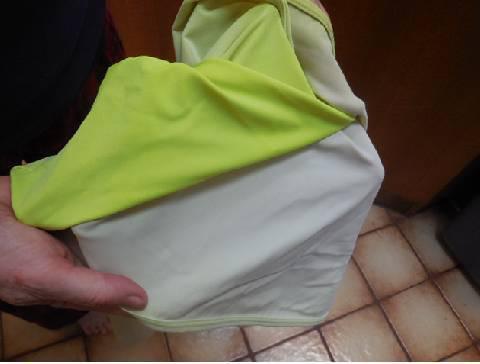 Our other example of an equipment failure followed by great support came from the Terry Company. Terry specializes in women's gear, and Dodie used one of their bike seats happily for quite a while. Because she gets an allergic reaction to sun, Dodie has been wearing Terry's "Bolero" style sun sleeves. It's a design that not only has the sleeves, but goes around the shoulders, ensuring that there is no slippage, as with individual sun sleeves. Originally Dodie got this in white, which was the only colour other than black. But when she saw that they came out with it in fluorescent yellow, she jumped at the chance for more visibility. Only thing, after a year in the sun, the yellow bolero was bleached pretty much pure white. We sent a photo of this to Terry, and ... they sent a new yellow one! So now Dodie is set, for one more year at least.