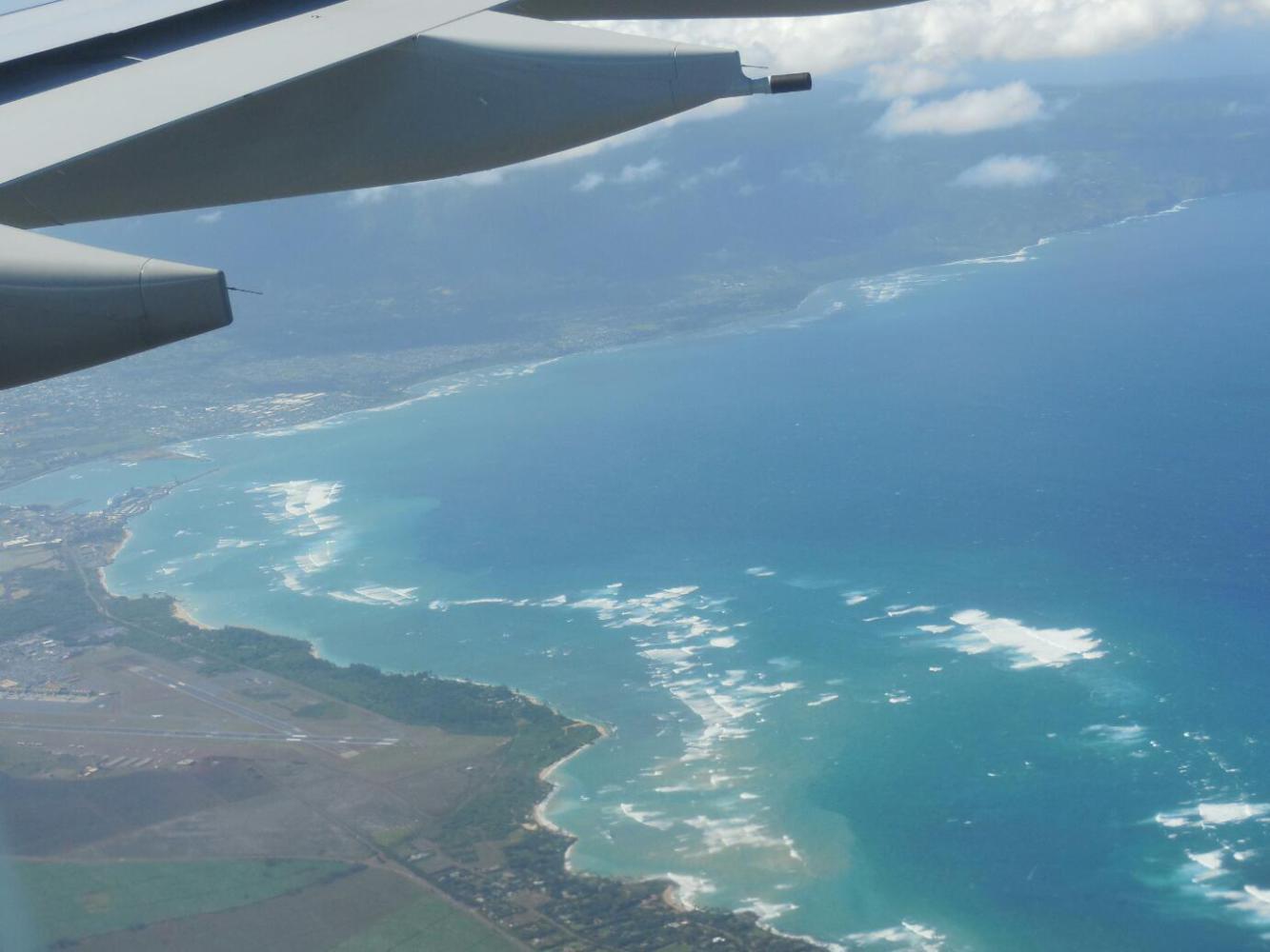 The next impression, formed from the air, is that the whole place is a lot bigger here than on the maps at home. Of course, we know that Hawaii is bigger than 2 feet by 2 feet! No, what I am talking about is the imagined size when gazing at the map. You look at it and think, oh, we could cycle that bit in a day. And so forth. But now, actually looking at Haleakala and at the west side of Maui, it looks big. And the mountain behind Kona? High! The Kohala Coast? Long!